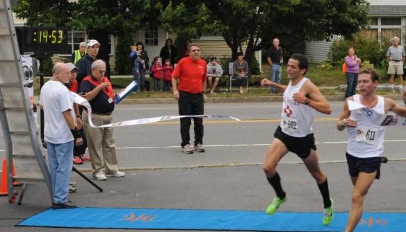And here comes Baker across the finish line. Photo by Chuck Miller.
