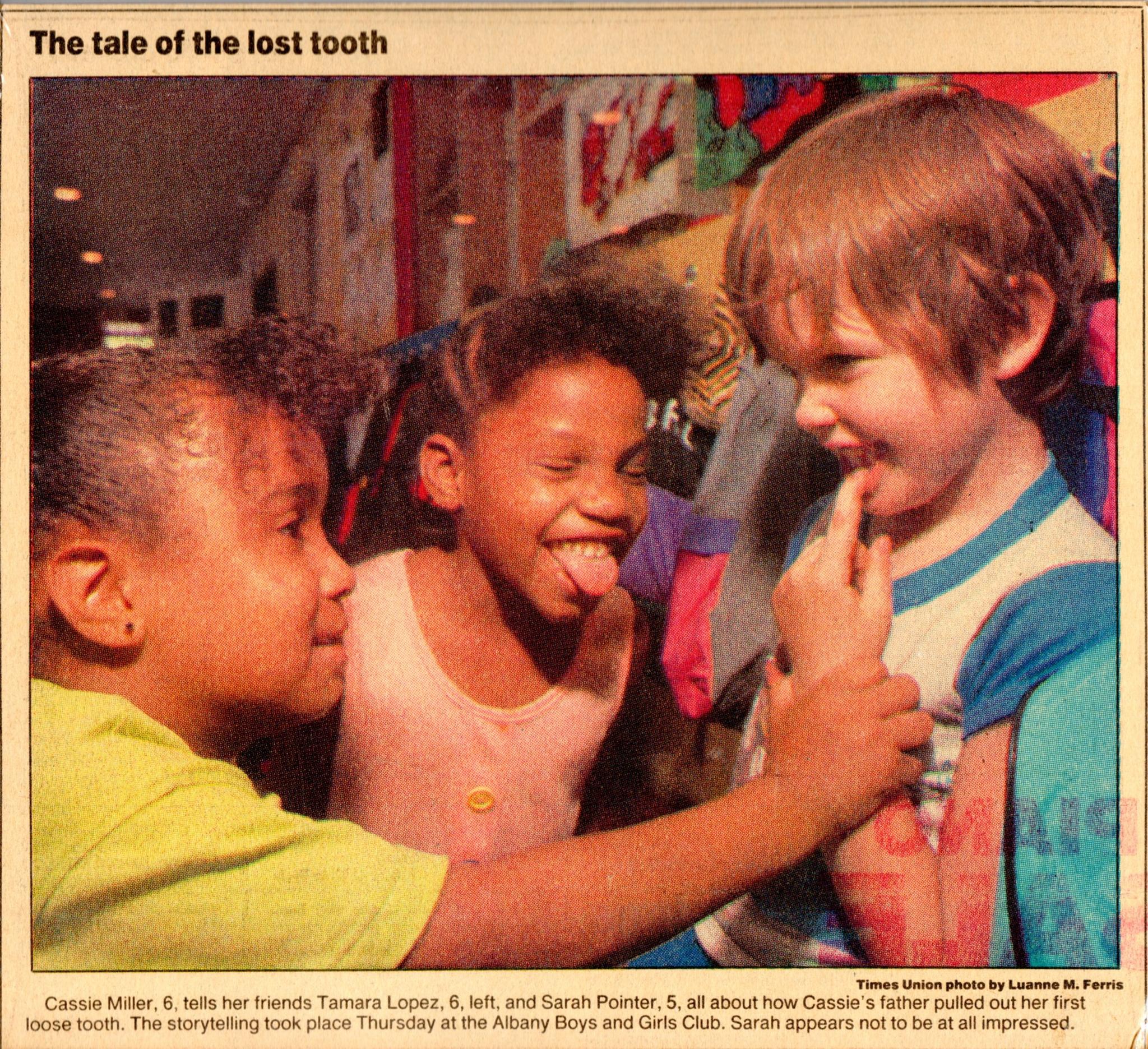 For years I kept this old photograph of you that was taken for the Times Union. This was back when you were in first grade, and attending an afterschool program at the Albany Boys and Girls Club on Delaware Avenue, and I would pick you and your sister up there after I finished work. I had no idea you were going to show everybody in the Boys’ Club – including a Times Union photographer – that you had lost one of your baby teeth. But I kept that picture until you came to visit this week, and now that photo is on its way back to Seattle with you, so that you can show all your friends how cute and adorable you were as a first grader.