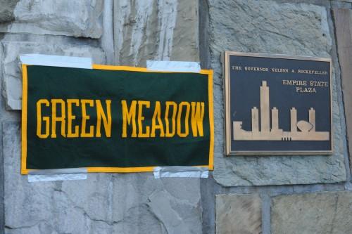 The Green Meadow alumni were to meet at a location near the overpass – over two dozen runners in Green Meadow green-colored T-shirts. I met Michele’s coach, “Mr. C” – Peter Citrolo – and he told me that Michele was a great runner and a first-class person.
