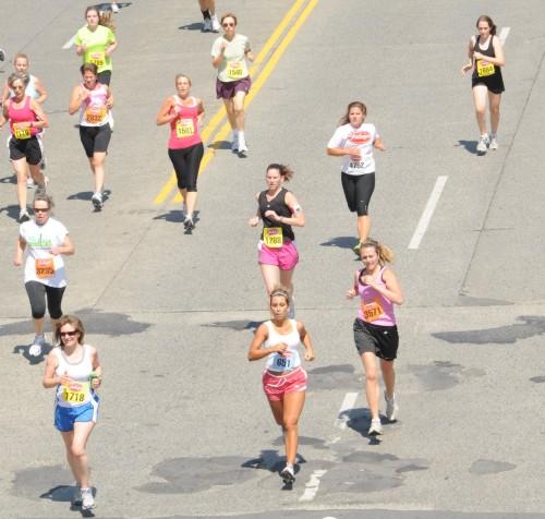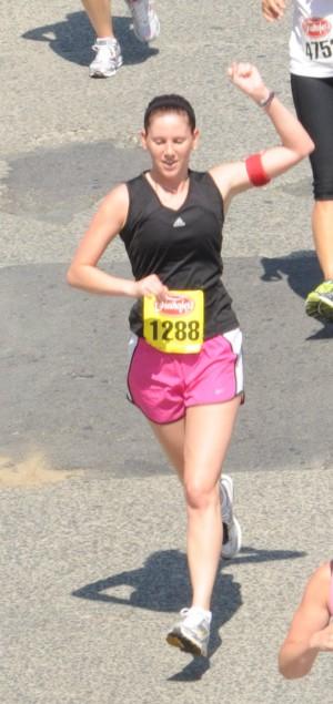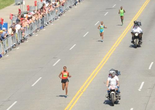 As the runners sped past me, I tried to find Michele. No luck. Oh well, I thought, I’ll just go down to the finish line and try to photograph her as she finishes the race.