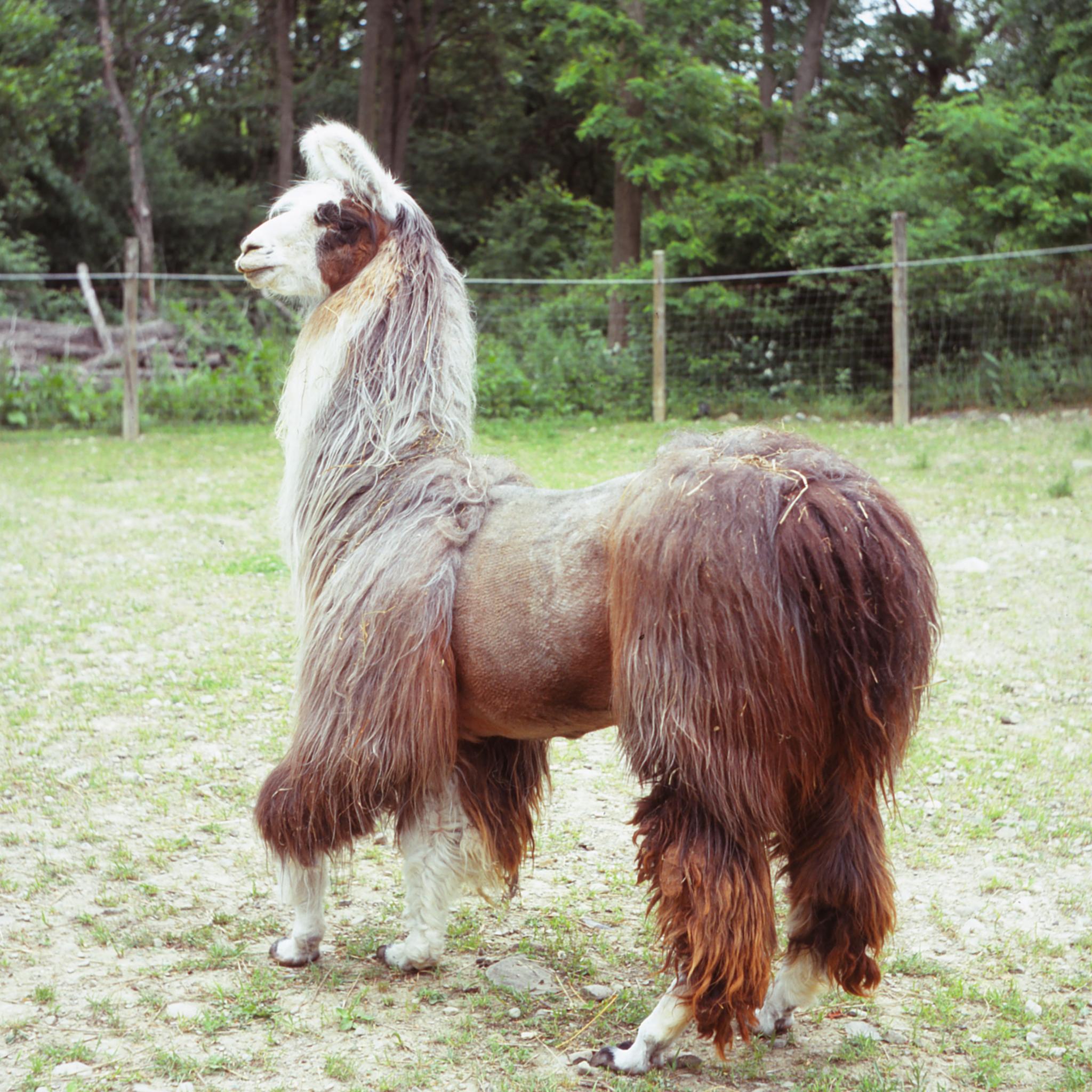 Category: Color, Animals. Background: Photographed with Rolleiflex Automat MX camera, Fuji Astia 100 slide film. Photo taken in Altamont, N.Y. Photo taken June 2011. Prior pedigree: None. Stella the llama, the pride of Wunsapana Farm, shows off that even with a disability she can still stand tall. |