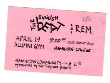 When the tickets for the English Beat / R.E.M. show became available, they were snapped up like candy.  Everybody wanted to see the English Beat – and those who listened to WHCL also wanted to see R.E.M.