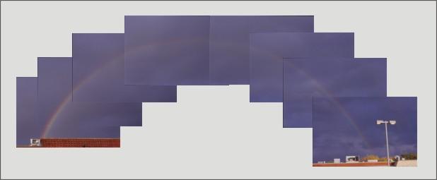 Wait a second and a half.  I may not have gotten the rainbow in a single photo, but I did get it from one end of the bow to the other in a series of photos…