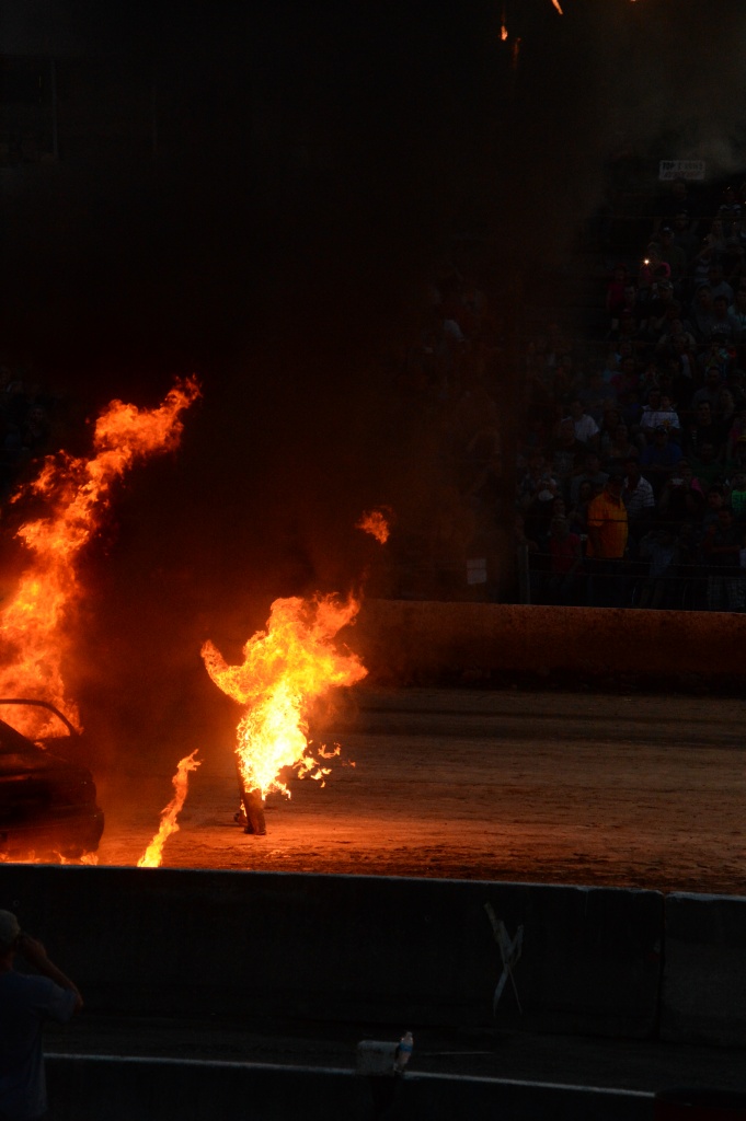 He walked around the track a couple of times, and as the firemen finally put his flames out, he celebrated another successful death-defying stunt at Lebanon Valley Speedway.
