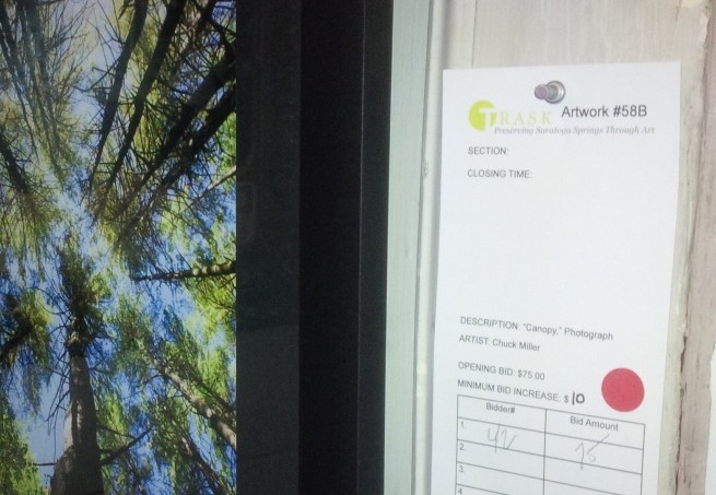 Here I am at the Canfield Casino in Saratoga Springs. It’s Thursday night, and three of my artworks – my first printed infrared piece, a five-year-old Kodachrome shot, and a picture I took two years ago and completely forgot about – are all on display, along with the artworks of nearly eighty other talented Capital Region artists, at the 2015 Saratoga Springs Preservation Society TRASK Art Show and Auction. Nice.