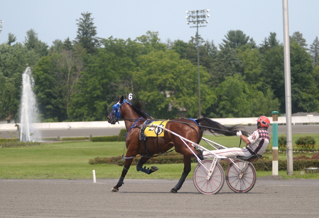 Okay, now the worries kick in. Could he navigate around the other horses and make it safely to the rear of the field? Would there be another case of sulkey-upon-sulkey crash?