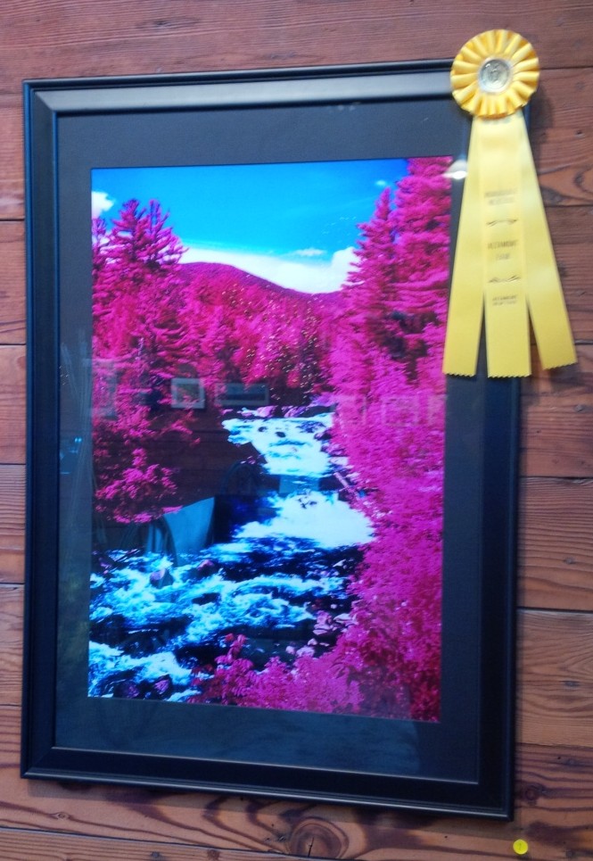 Honorable mention for Aerochrome Falls! My first ribbon for an infrared picture, my first Altamont ribbon for the Kodak Medalist II, my first ribbon for a 24×36 sized picture since Midnight at the Palace Theater, and this is a good sign – because Aerochrome Falls has been entered in my three other photo competitions this year!