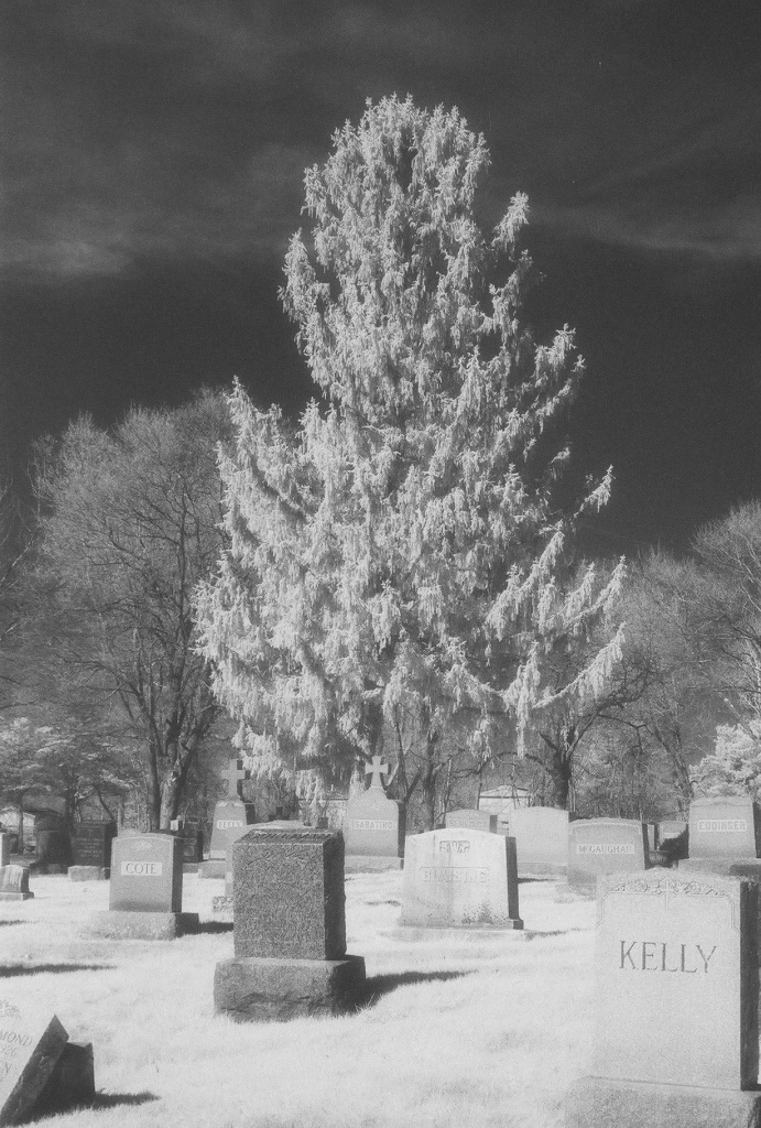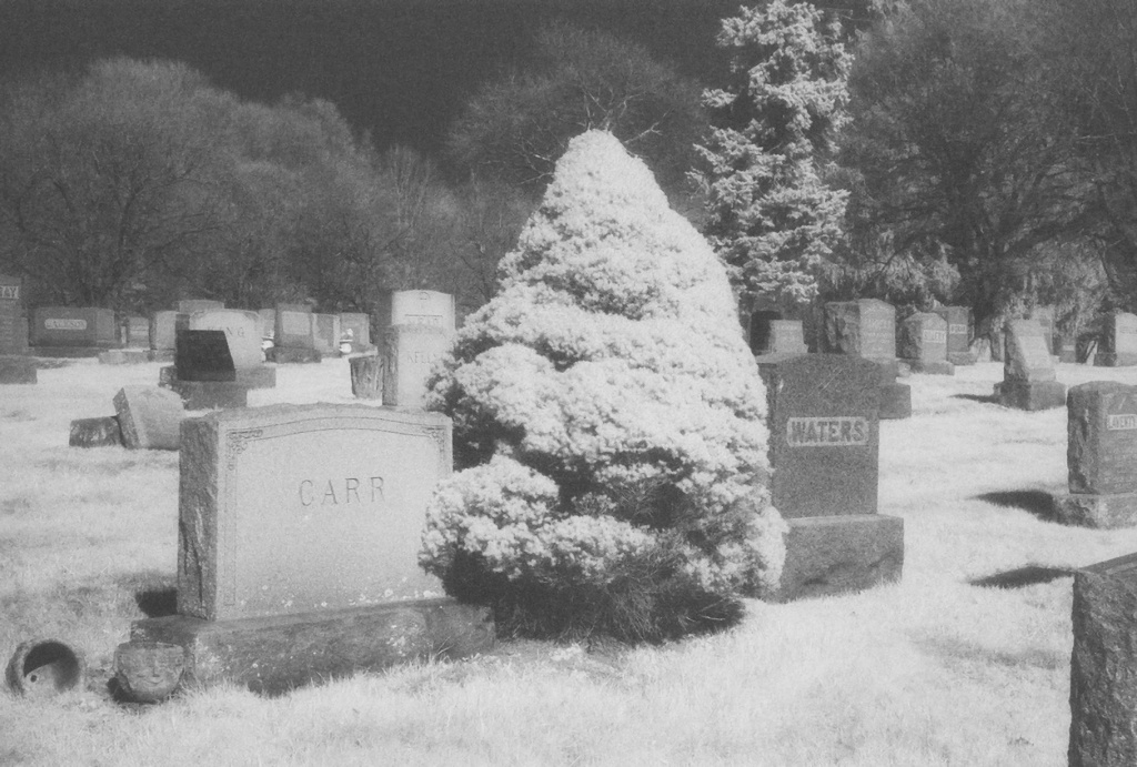Let’s see what infrared photography looks like in St. Agnes Cemetery, shall we? Green grass that turns white, blue skies that turn black, yeah this should be fun.