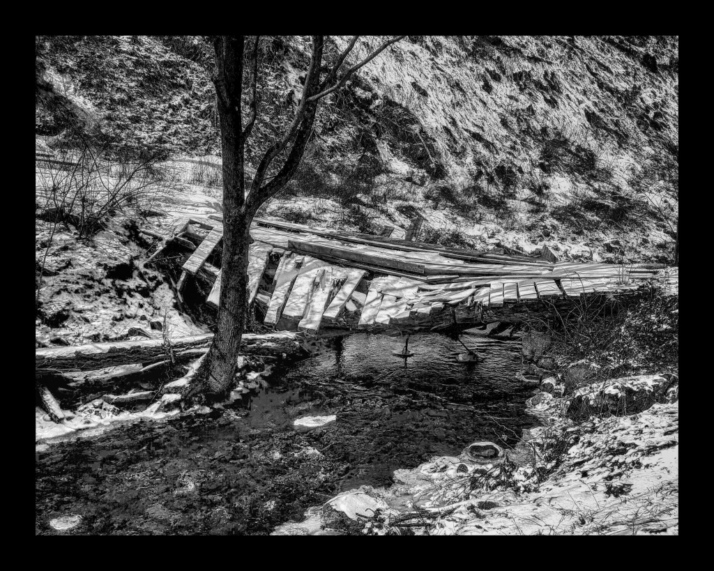 Last year, I took my Nikon Df camera through the Adirondacks and captured some great photos. One of those photos, taken in Warrensburg along Route 9, was of a distressed wooden bridge that spanned a small stream.