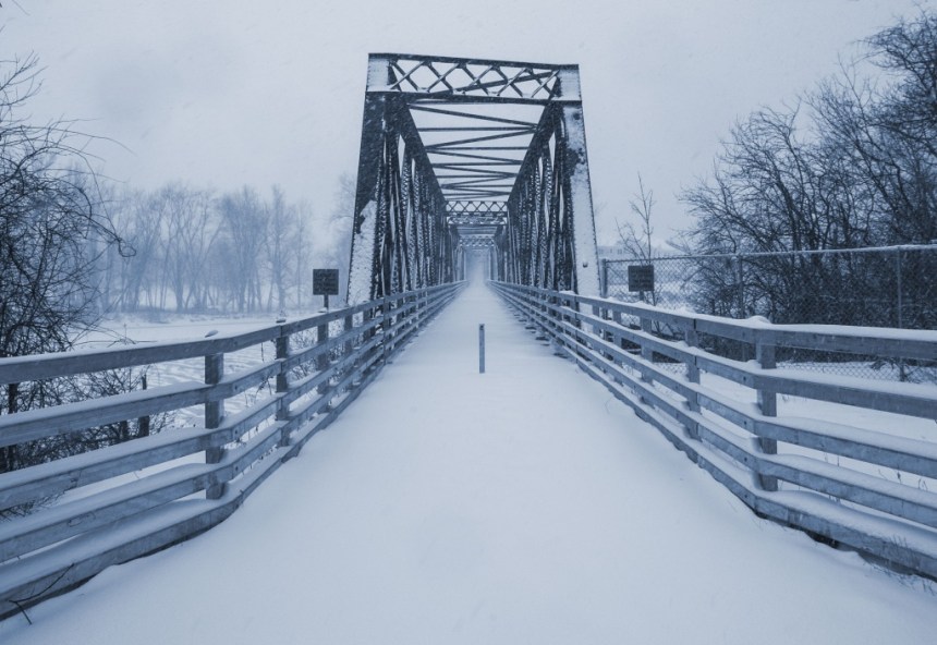 I walked to the Black Bridge. Snow drifts up to my ankles. Wind blowing every which way.