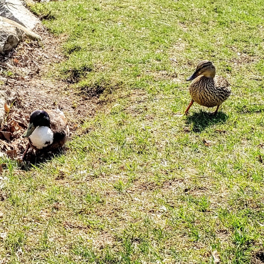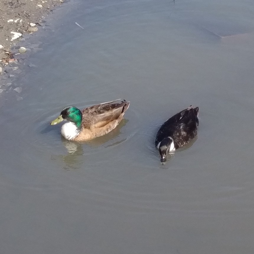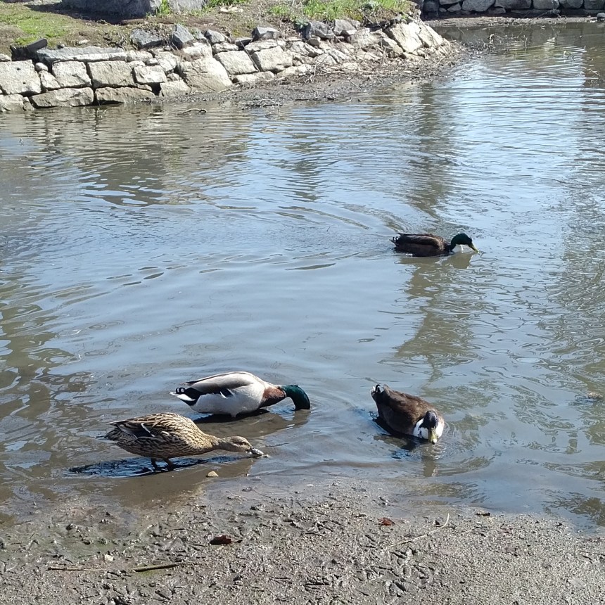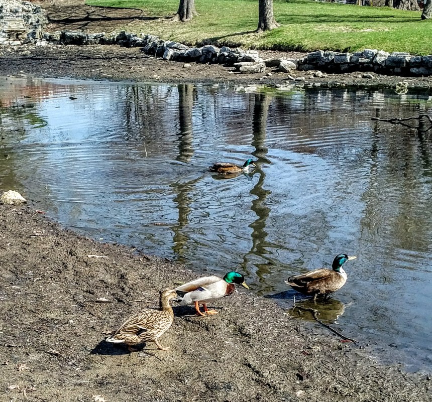 The ducks swim by. They’re not paying attention to me. Maybe it’s because I don’t have any bread crumbs or cereal for them.