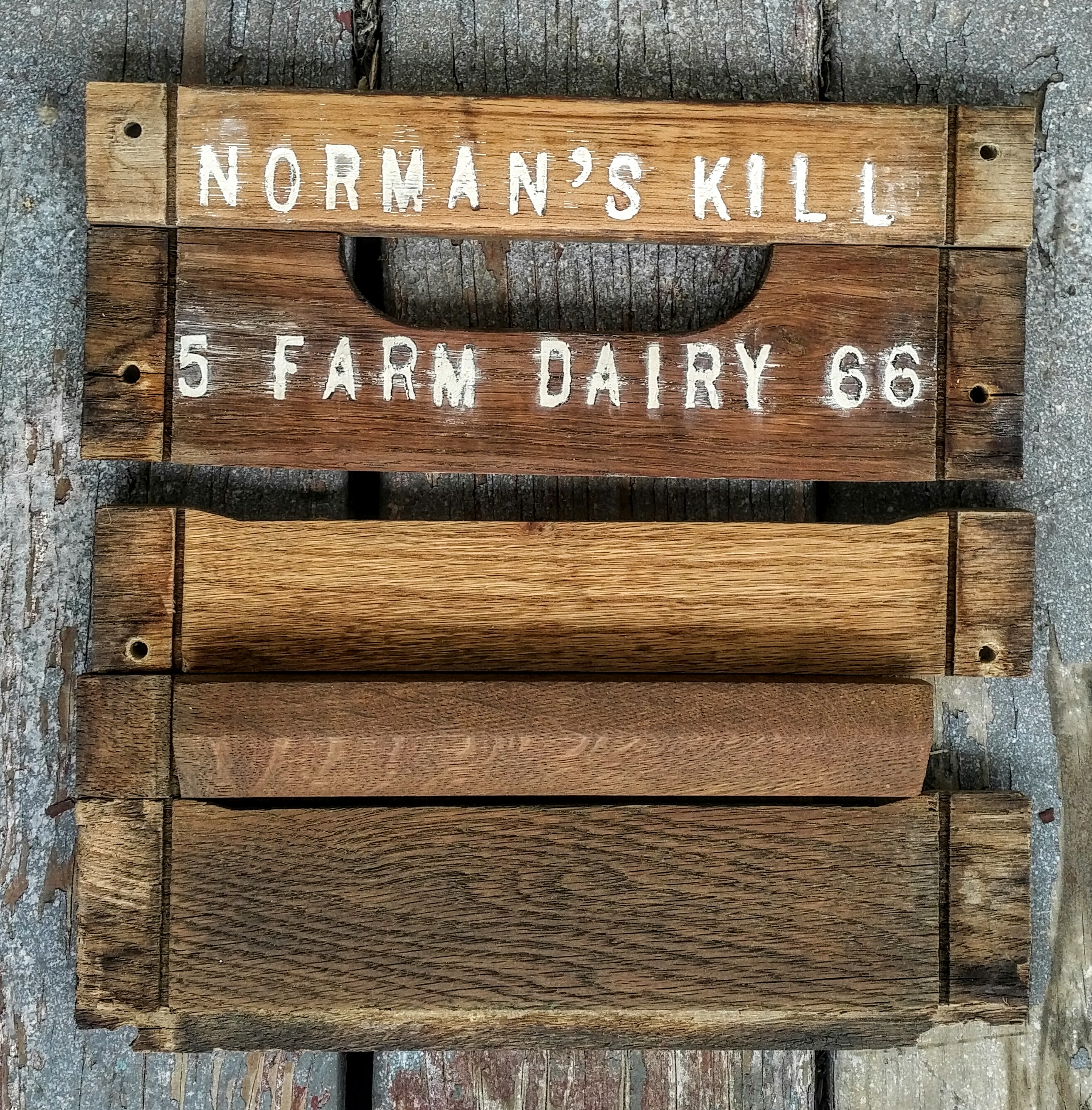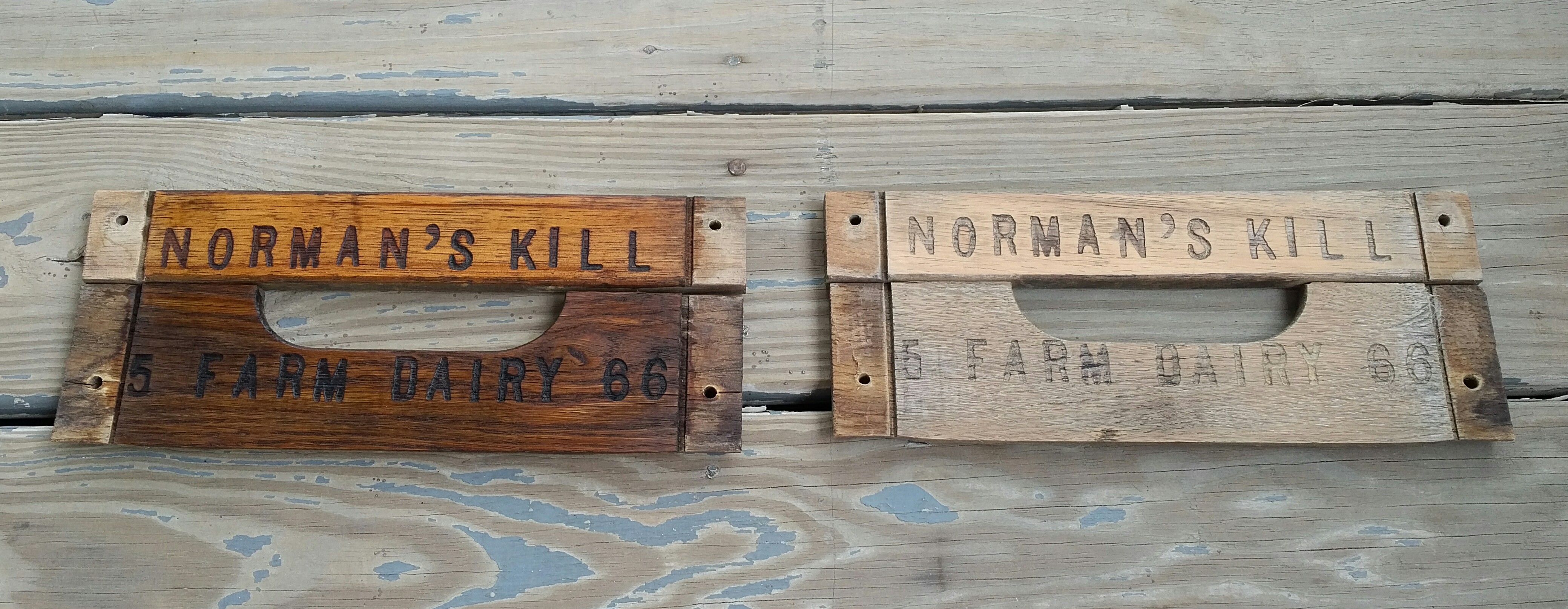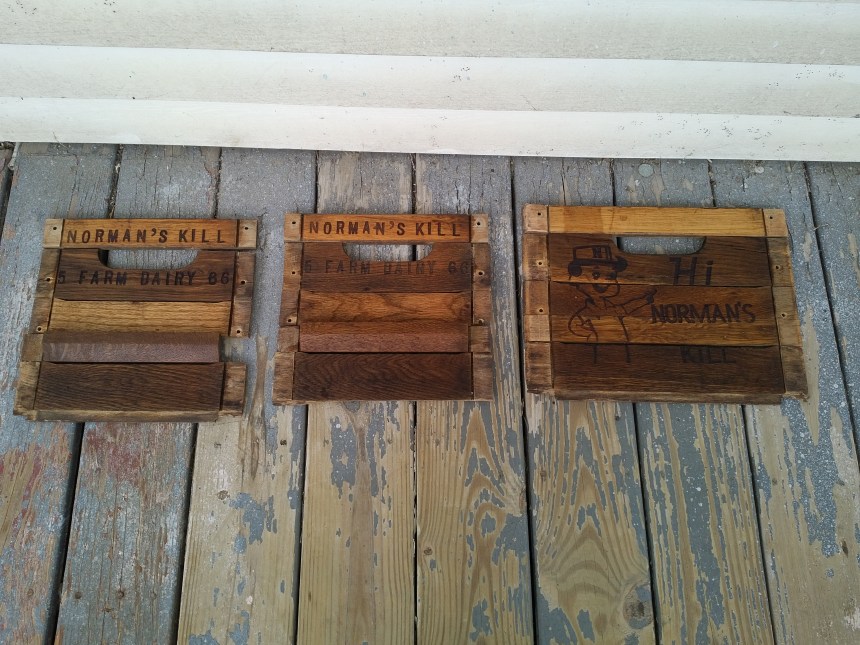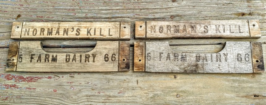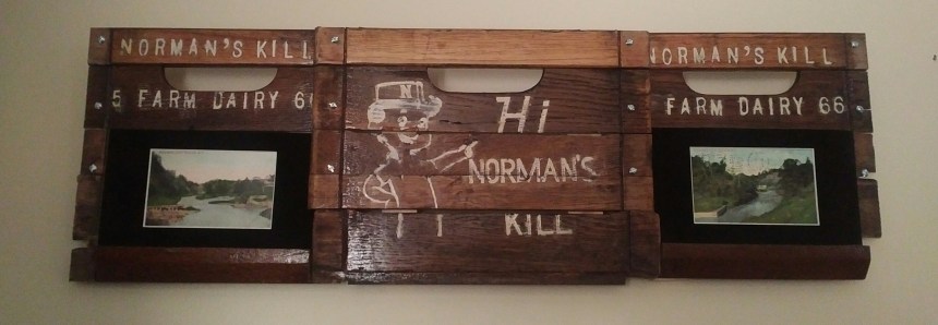 But if I ever entered this in some sort of competition, either as recycled art or as a representation of Albany’s cultural past … how well would this work? I mean, to someone who hasn’t perused my blog before, they might see this and surmise that I simply carved the side of a milk crate off its frame. And how many people outside of the Albany-Schenectady-Troy area would understand that a “kill” is a Dutch word for stream, and that Norman hasn’t killed anybody – in other words, this didn’t come from the Bates Motel Dairy, people…