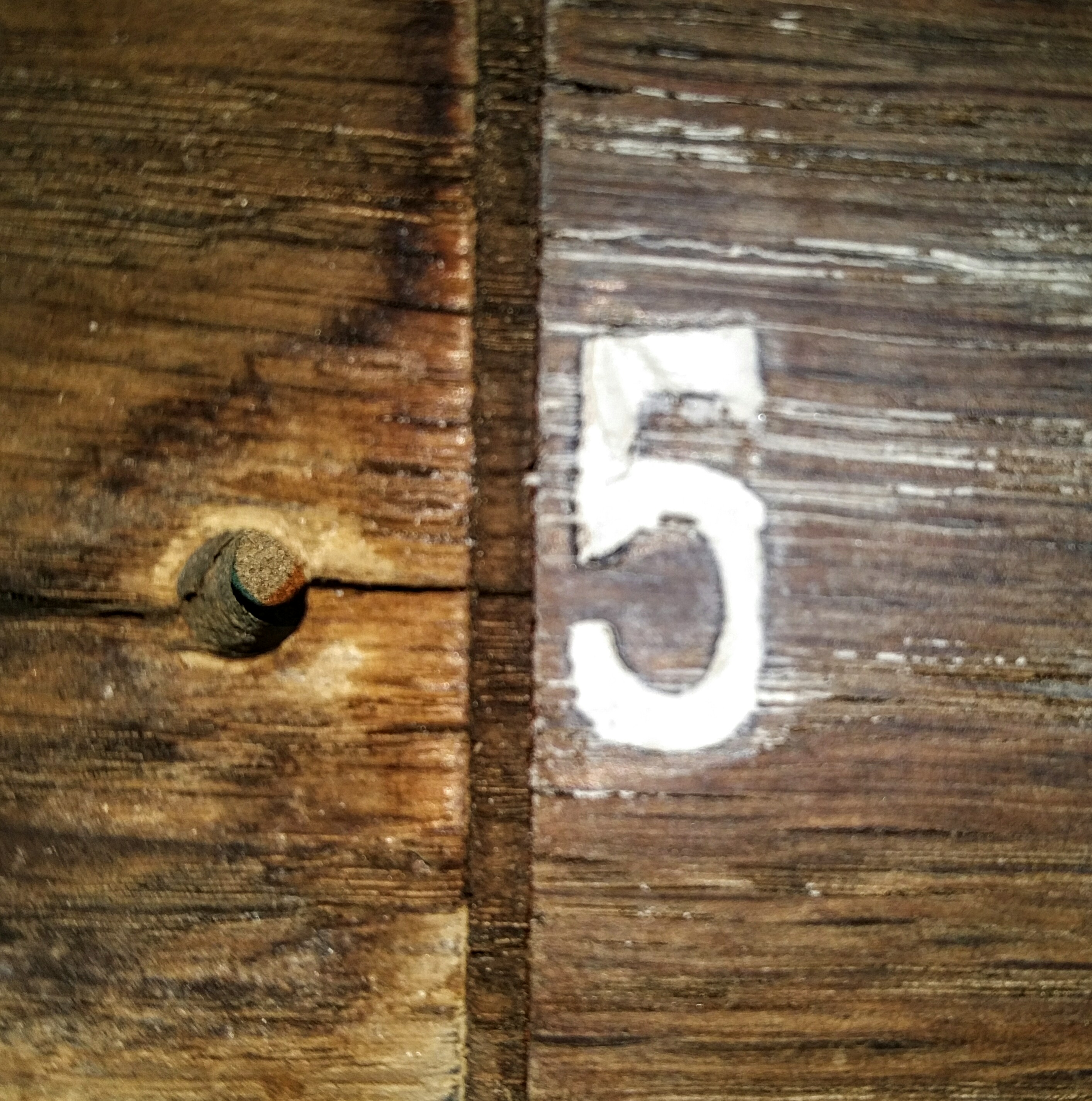 It took a few hours to wedge the putty into the carved letters and numbers of the oak planks … and after spending the better part of an evening using wood putty to complete one plank, I went back to Home Depot and picked up some liquid wood filler – the kind that comes in a tube. A few squirts into the letters and numbers, and I wiped away the excess with a straight-edged putty knife. A little sanding with 80 grit sandpaper… and I got this.