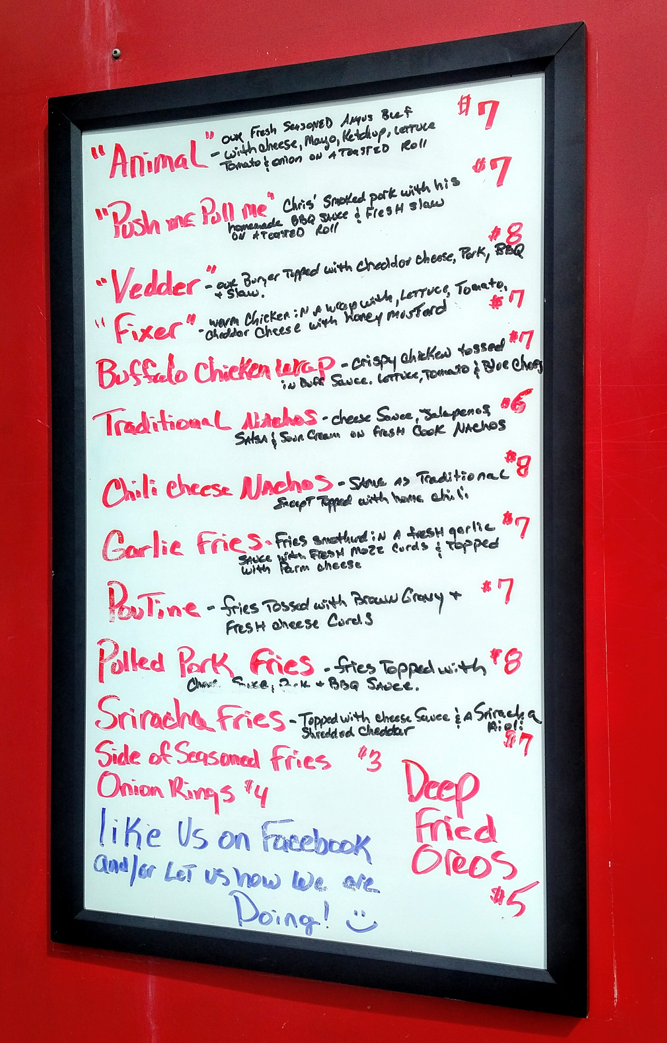 But I’m looking at this list, and I’m wondering… if this is truly a Pearl Jam-themed eatery, then why can’t I find some food on this menu that will make me feel Alive?