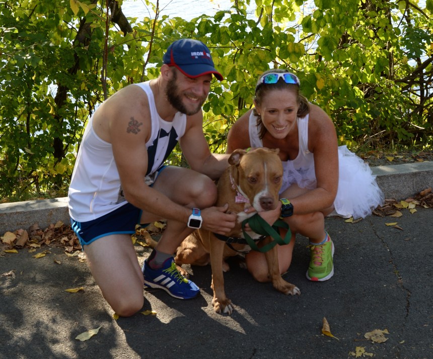 There’s J-Mac and Katie, along with their rescued pit bull Nelson. Photo (c) Chuck Miller, all rights reserved.