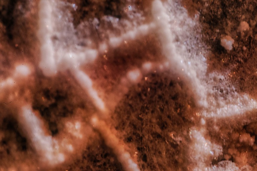 I’m still growing salt out of one of my “salty mug” projects, so here’s what the salt fissures look like at 4.5 times normal size.