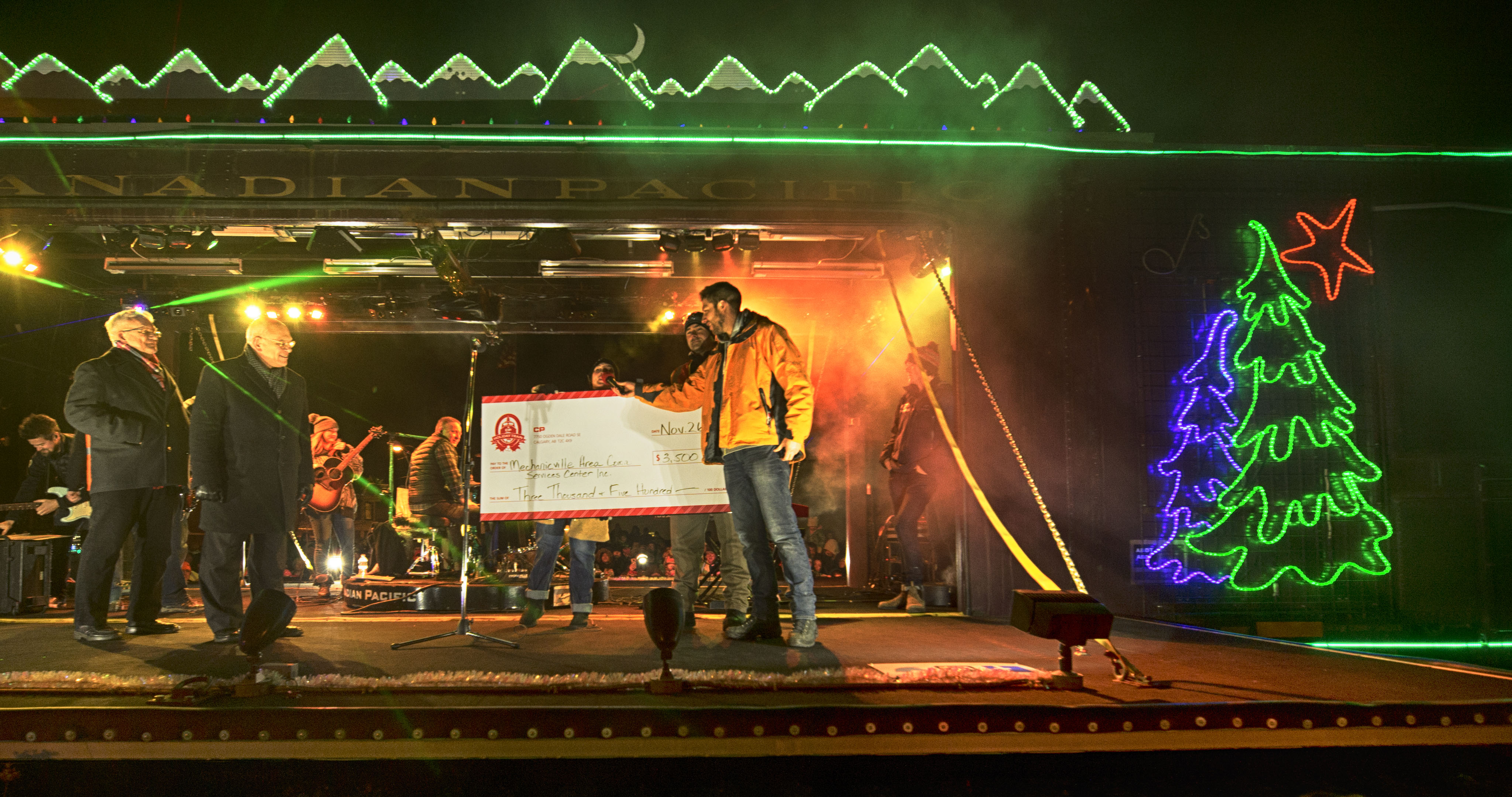 After Devin Cuddy performed a couple of songs, an announcer let people know that the train has generated millions of dollars and millions of pounds of food for needy families and charities in the past two decades.  And tonight would not be different – CP presented the local Mechanicville food bank a check for $3,500.