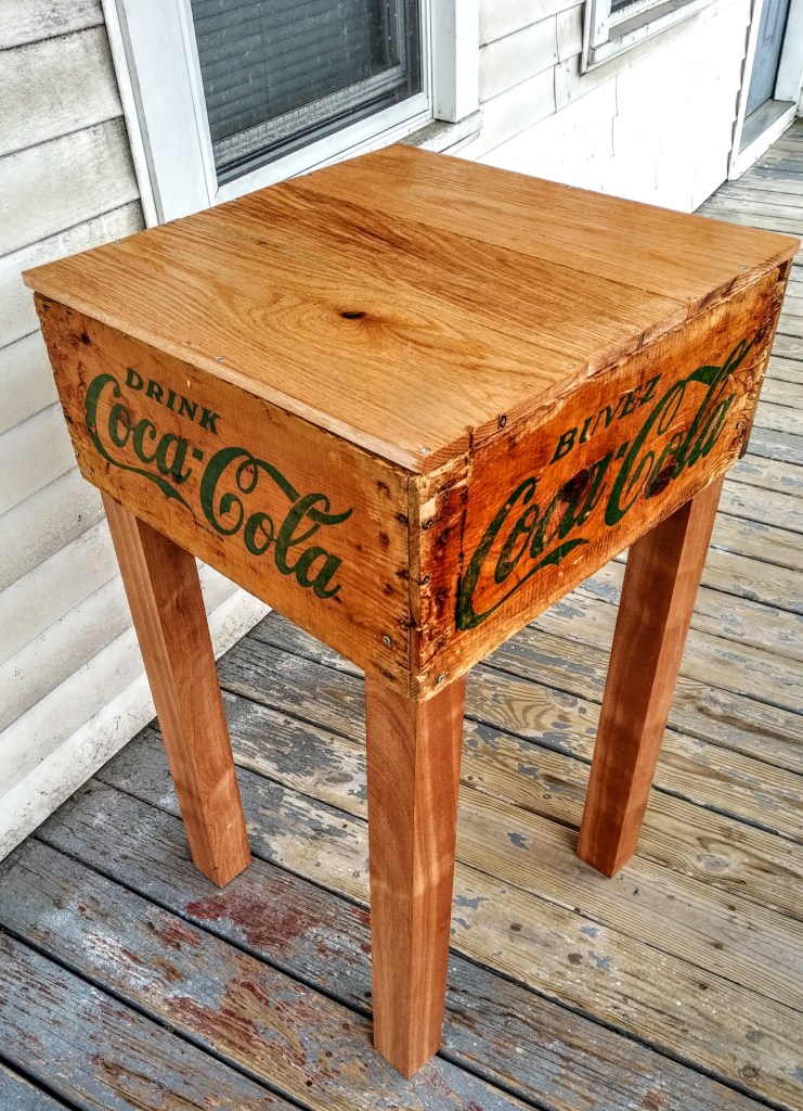 I figure that with a pair of Coca-Cola Canadian crates, I can take the sides apart from the crates, re-assemble them as a flat-top table with four sides, and then craft some table legs for the base.