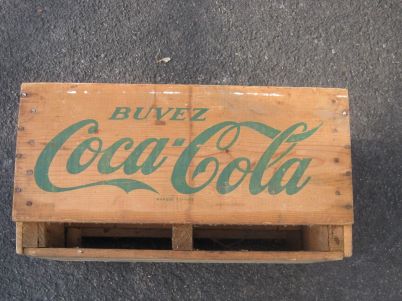 French-Canadian Coca-Cola soda crates are distinctive in that they have green print (as opposed to the Coca-Cola red script), and while one side will say “Drink Coca-Cola,” the other side will exclaim, “Buvez Coca-Cola.”