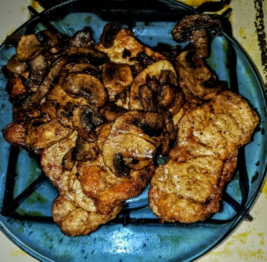 Slide the mushrooms out of the pan and onto your pork chops.