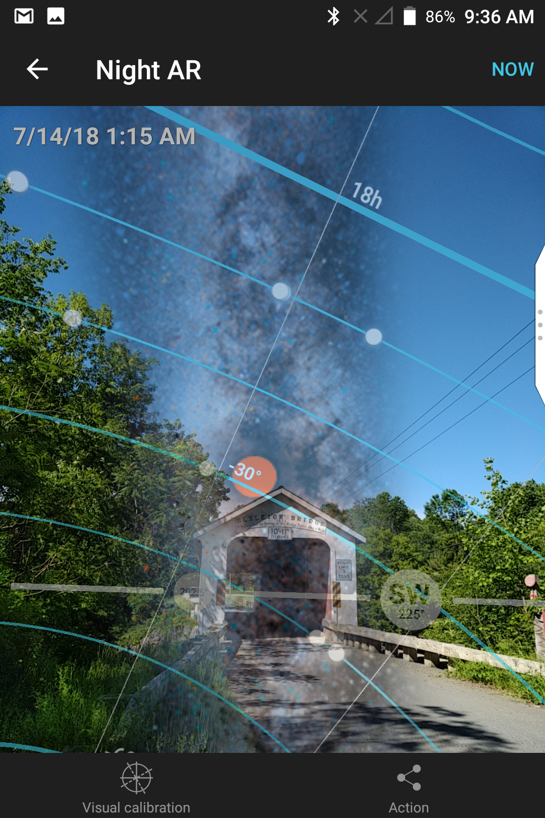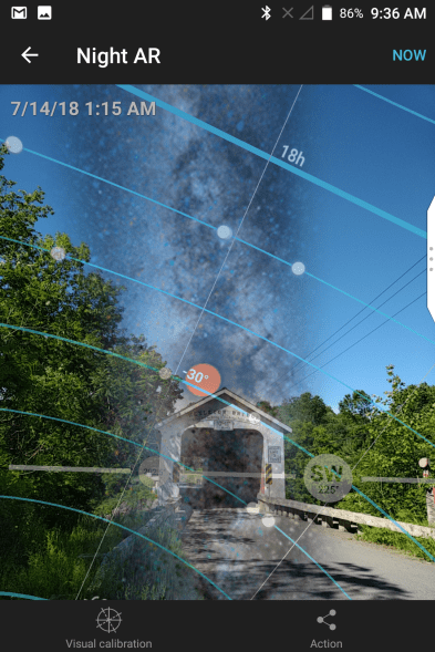 And if all goes well, according to the simulator, I should be able to snag the perfect shot of the Rexleigh Bridge and the Milky Way galaxy behind if … if I photograph at 1:15 a.m. on July 14, 2018.