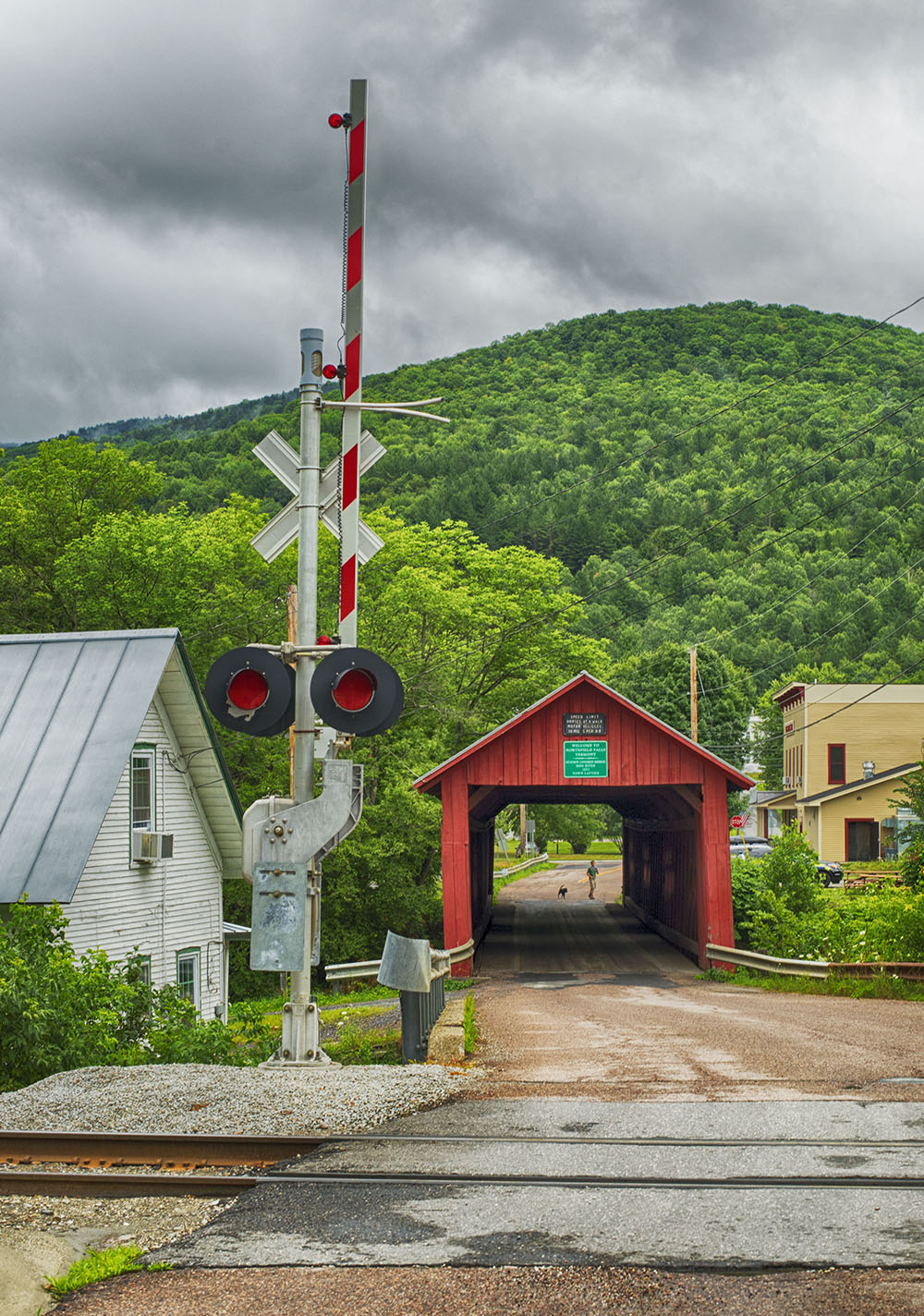 A very important thing to know about photographing covered bridges. You want to get the frame and the length and all that, but you want to avoid – if at all possible – things like highway height restriction signs and the like. I did the best I could with these.