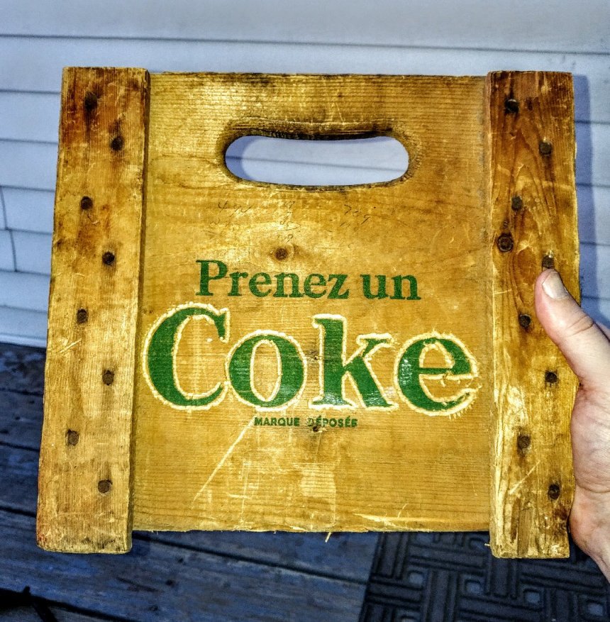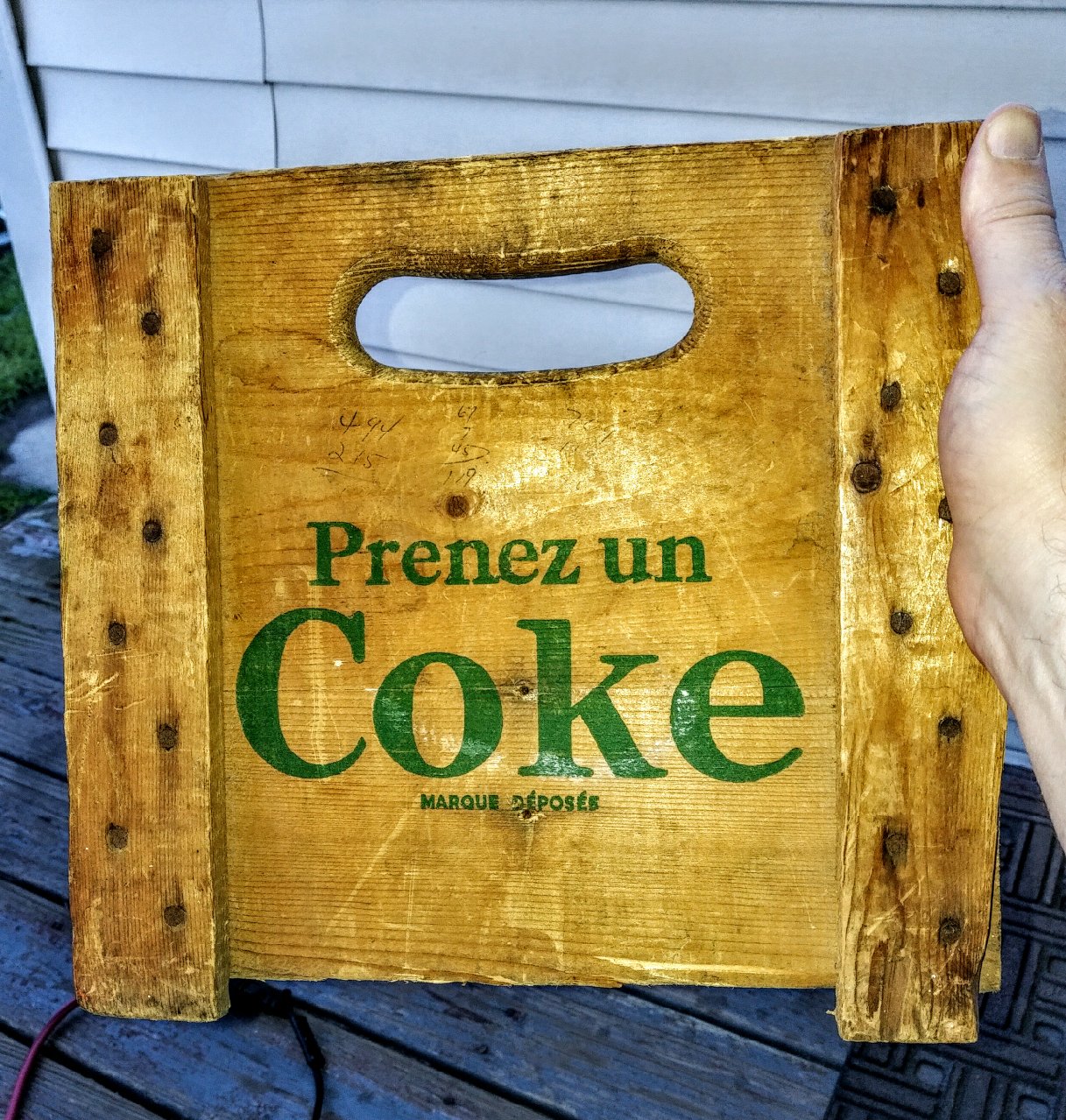 Last year, I took a French Canadian Coca-Cola crate and turned it into a bird feeder. I still had the leftover sides of the crate, as you see here.