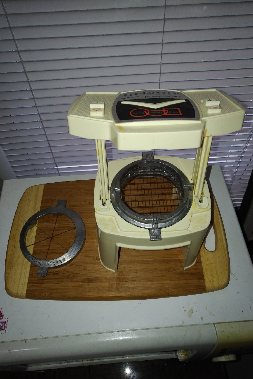 A quick glance on eBay, and I found not only a working Veg-O-Matic, but the additional “wedge” cutter blade.