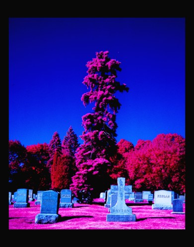 FARRELL IN AEROCHROMEI BLOGGED ABOUT THIS PHOTO AT THIS LINK So here’s the deal. You may remember a black-and-white picture I entered in competition a few years ago, named Farrell (named for one of the tombstones in the picture). Now I couldn’t enter that old picture in this competition, because the New York State Fair has a two-year-exposure limit on images. However … this infrared picture with Kodak EIR “Aerochrome” film was taken in 2018 … so it fits within the time period. |