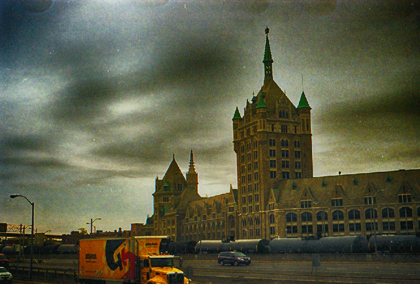 That, and I have to time the exposure of this photo so precisely – so as to capture the train and the building, but not the Safety-Kleen panel truck that just cruised down 787 and photobombed my shot at that exact moment.