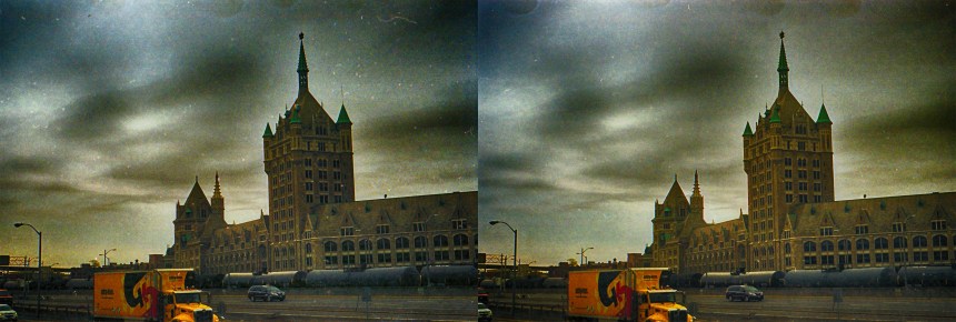 That, and my Nikon EM setup has two 50mm lenses, which aren’t wide enough to capture the entire length of the D&H Building (yes, it’s the SUNY Administration Building, but work with me on this). And I don’t have time to order two 28mm f/2.8 pancake lenses that would give me a wider field of view. Gotta dance with the girl you brought.