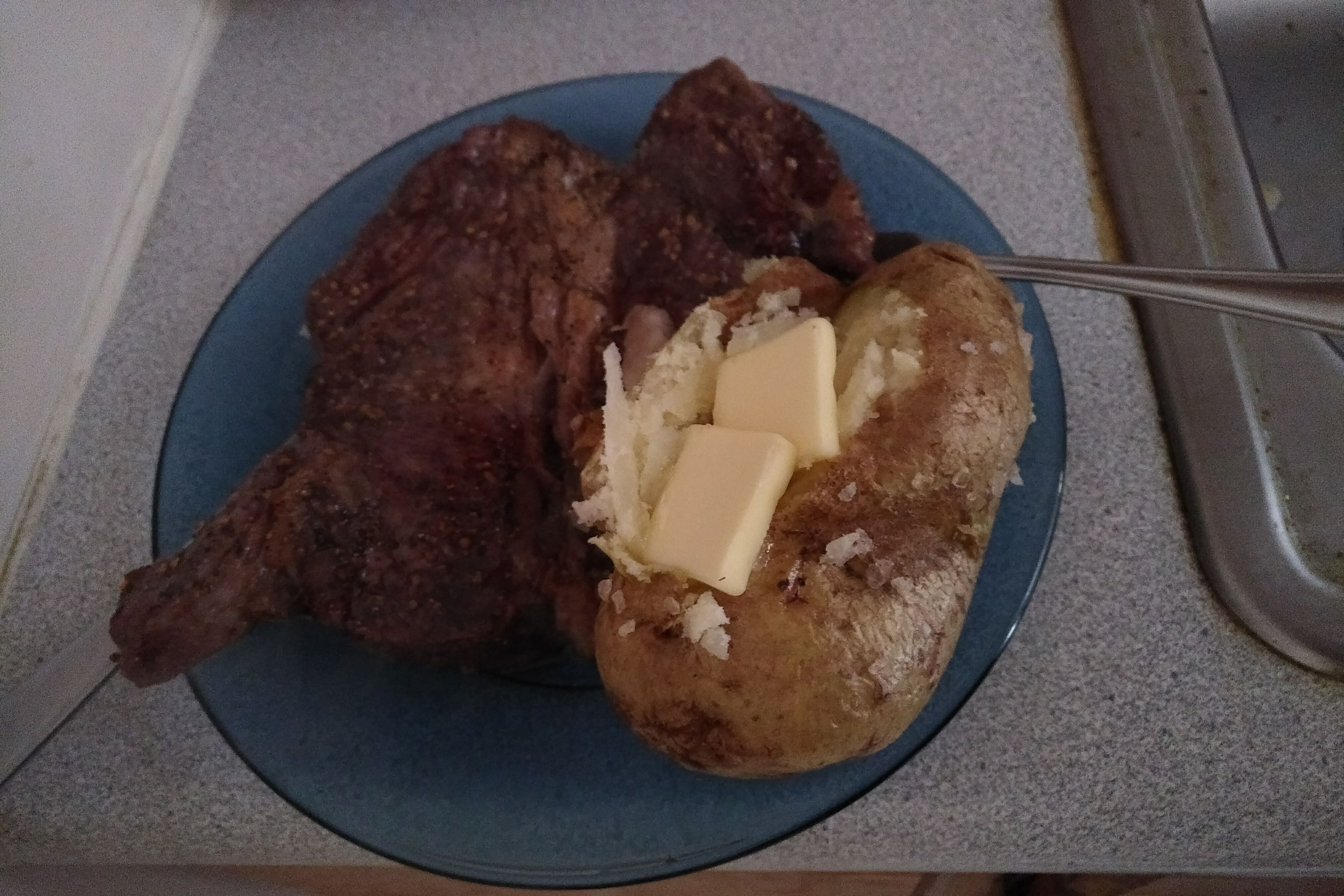 I picked up a pound of chuck roast steak, as well as a couple of Russet potatoes. That should make for a good Sunday dinner, wouldn’t you say?