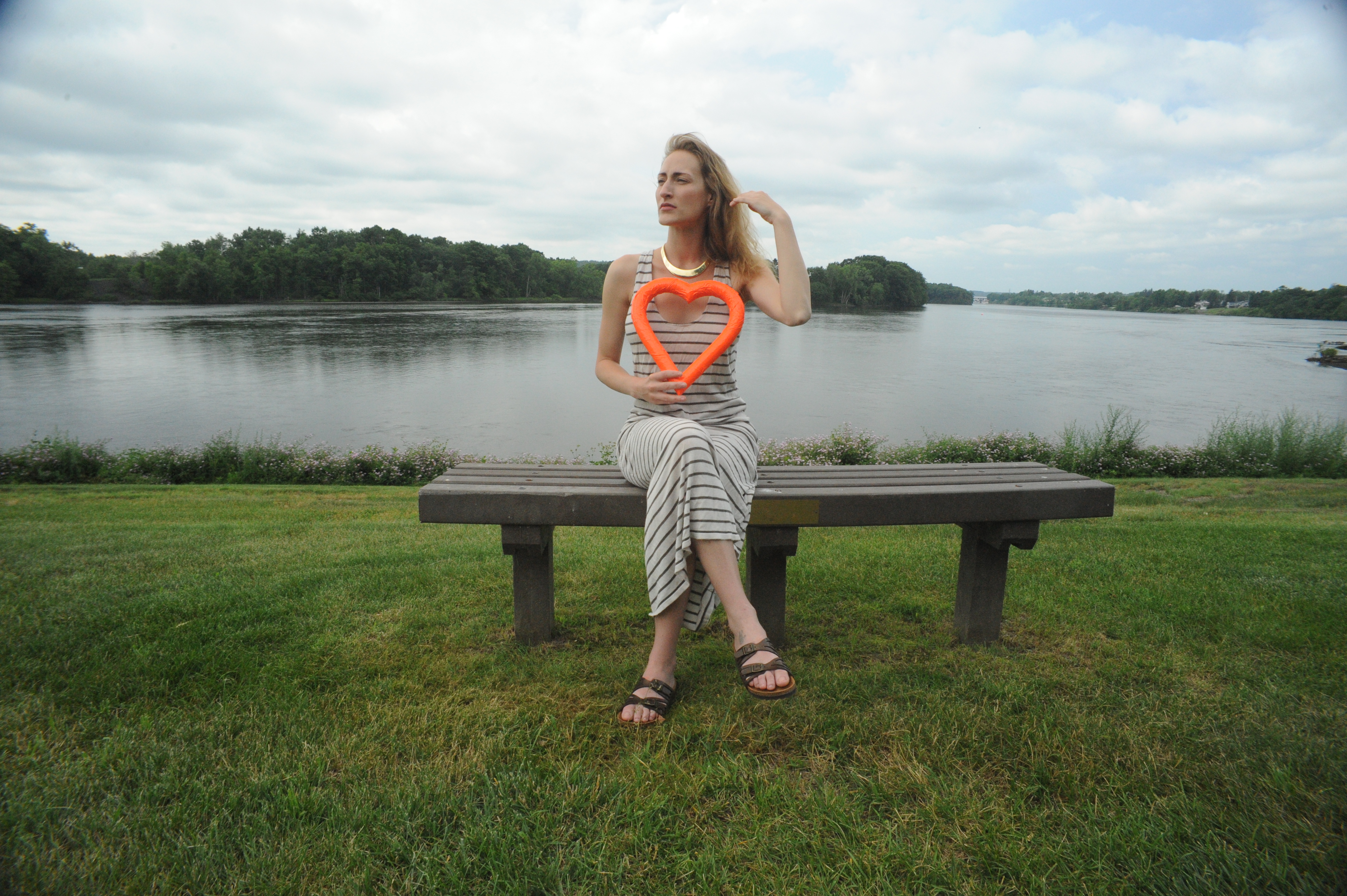 Several years ago, I asked my model friend Lauren if she would pose for a photo shoot. She agreed. I picked up a styrofoam valentine heart and wrapped it in orange-red duct tape, Lauren and I met up in Stillwater, she posed with the heart, and I removed whatever was in the heart’s interior – revealing the waters behind her.