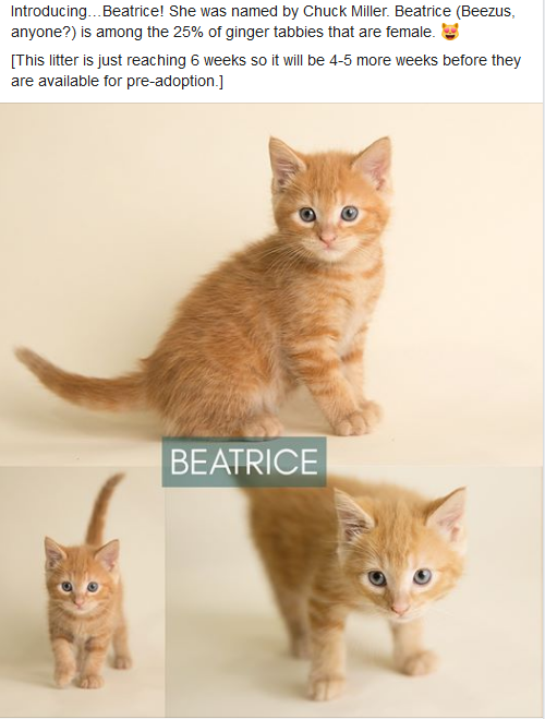 Oh well. No matter what, I hope that Beatrice finds a new home with a loving family and lives a very, very long and happy life.