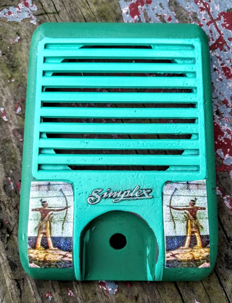 I then detailed the “Simplex” script logo, by painting it in silver Sharpie, and then using a black Sharpie to trace around the raised Simplex letters.