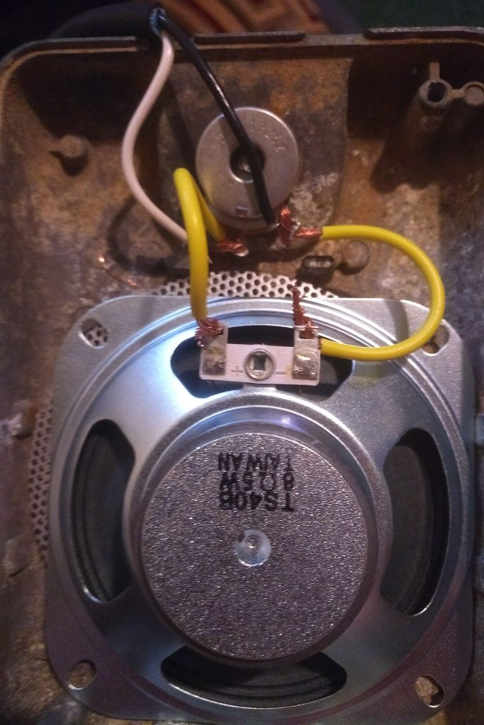 I ordered an entire replacement set from Detroit Diecast – a new 4×4″ speaker, new external “curly” wires, a new potentiometer and a new control knob.