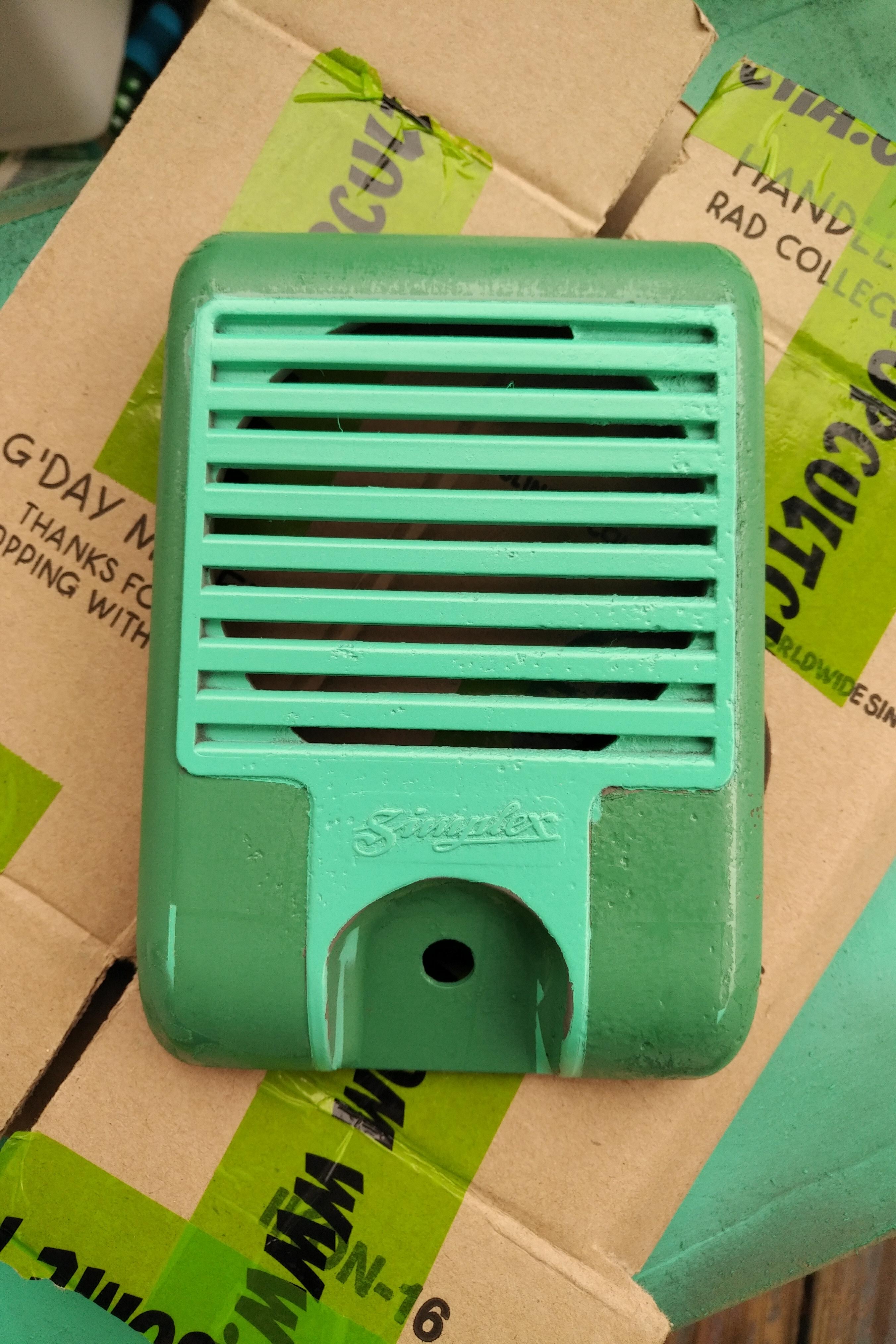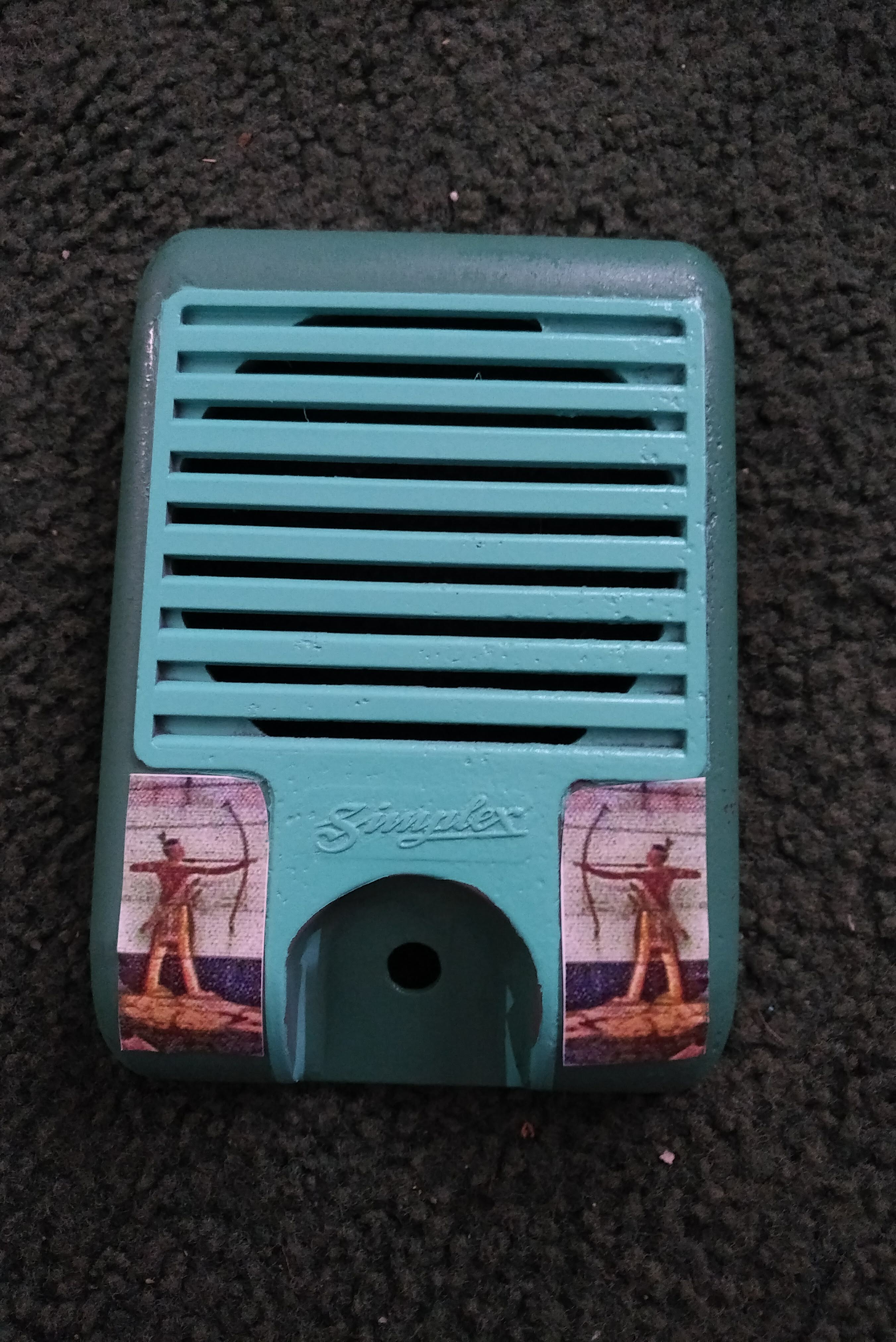 This is a vintage Simplex speaker. In addition to drive-in speakers, Simplex also makes fire alarms and motion detectors. As for this unit … the eBay seller told me it was “just like new, vintage.” Yeah, I can spot a bullshit artist from a mile away, but the unit was cheap and the exterior wasn’t that bad.