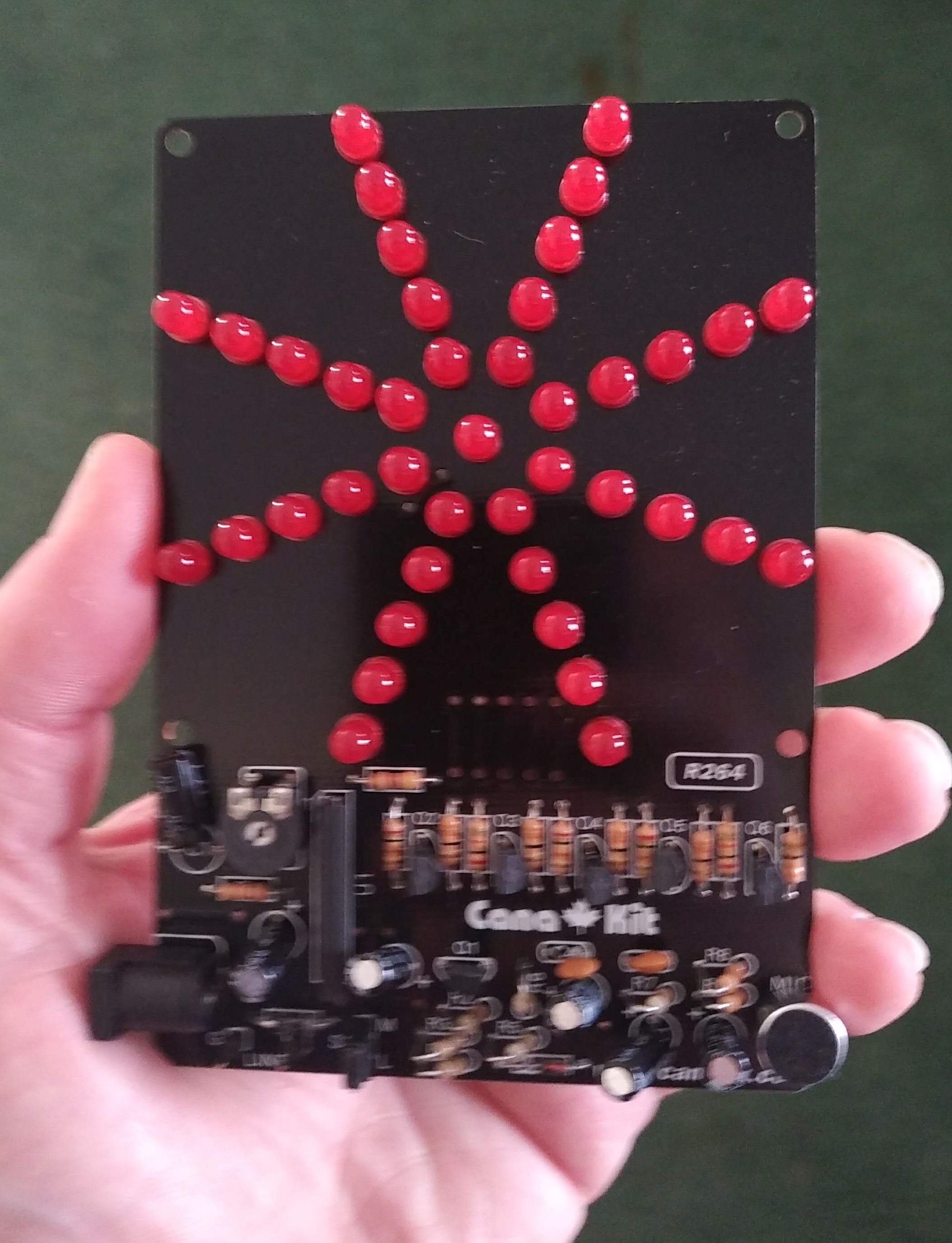 See that little circle on the lower right of the module?  That’s a microphone.  Once this unit is plugged in, any sound will cause the starburst pattern to illuminate.