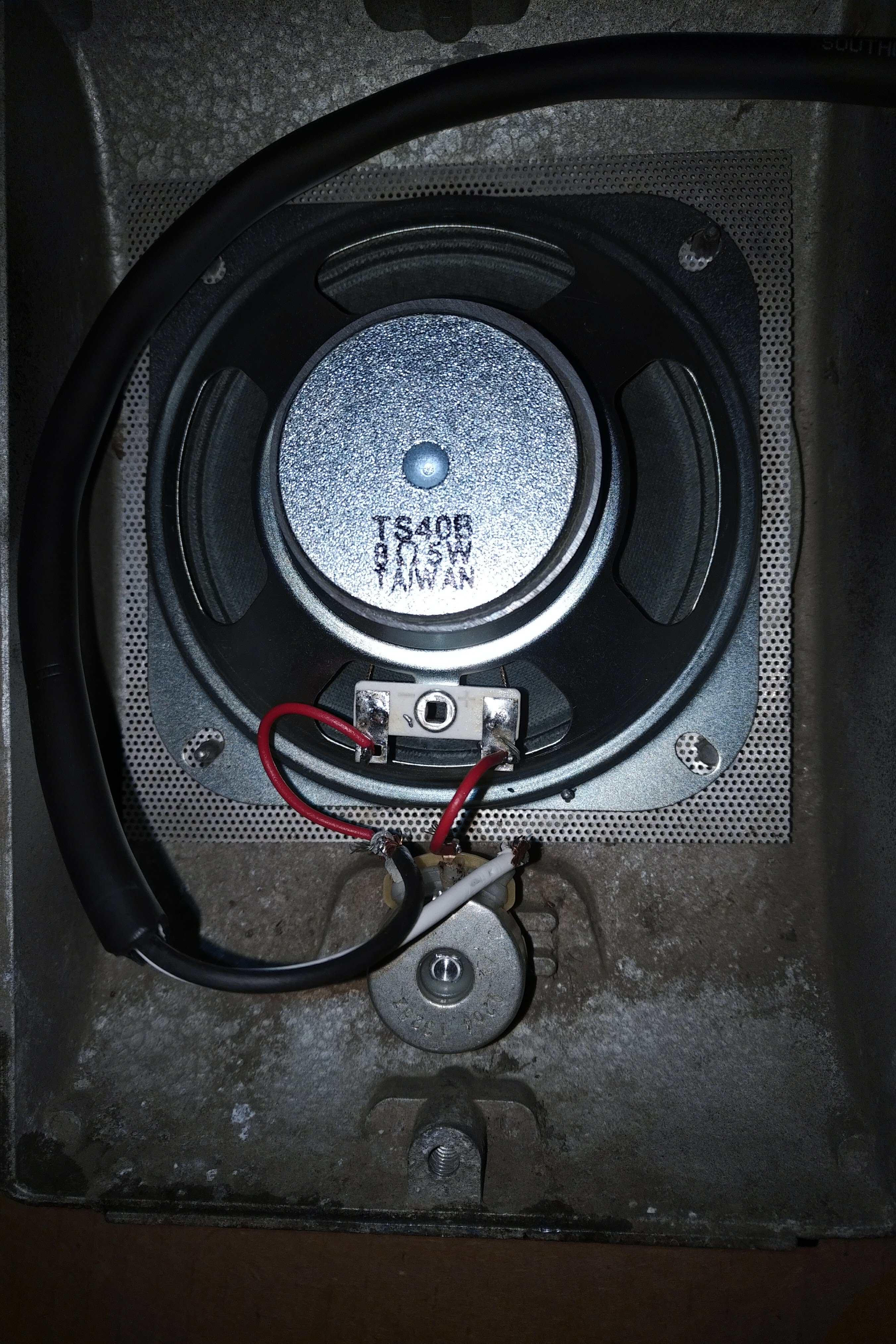 I opened the first one, just for an examination. Even though the speaker and potentiometer look halfway decent, I’m going to replace them, along with the speaker wire. Looks like I can make this work.