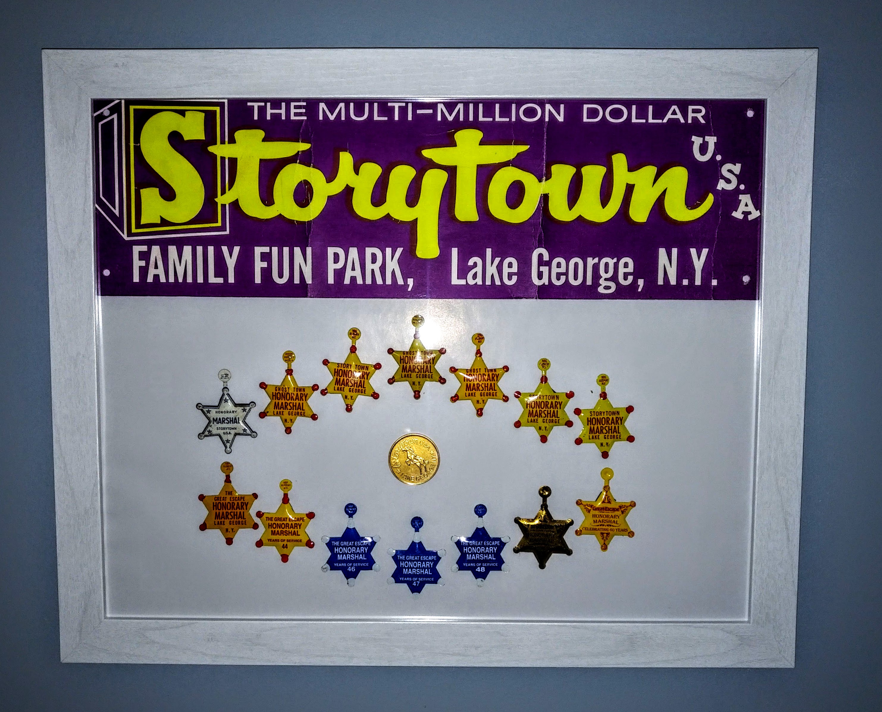 And with that, I had acquired 14 of those badges. I also snagged an old double-sided coin that could be used in both Storytown and its companion amusement park Gaslight Village, and had everything originally framed up years ago.