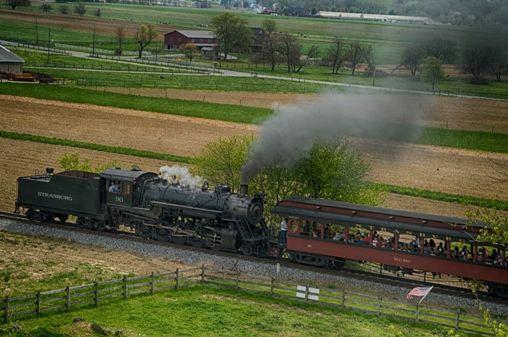 Not just any train, mind you. There is a heritage railroad in South Central Pennsylvania, deep in the heart of Lancaster County, that is home to the Strasburg Rail Road, one of the few remaining operational steam locomotive excursions out there. The Strasburg Rail Road travels five miles through over a dozen Amish farms and farmlands, all in the comfort of restored passenger cars and a big-ass steam locomotive.