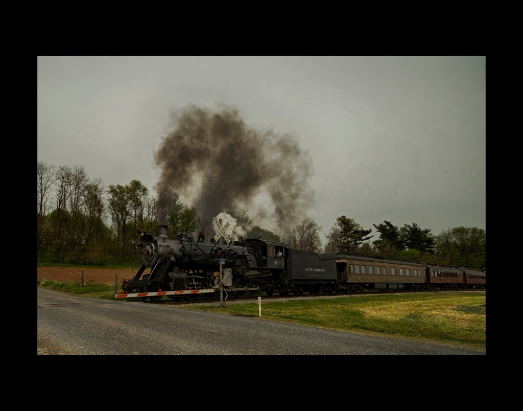 Strasburg Rail Road leaving station. Nikon Df camera, Nikkor 80-200 f/2.8 lens. Photo (c) 2021 Chuck Miller, all rights reserved.