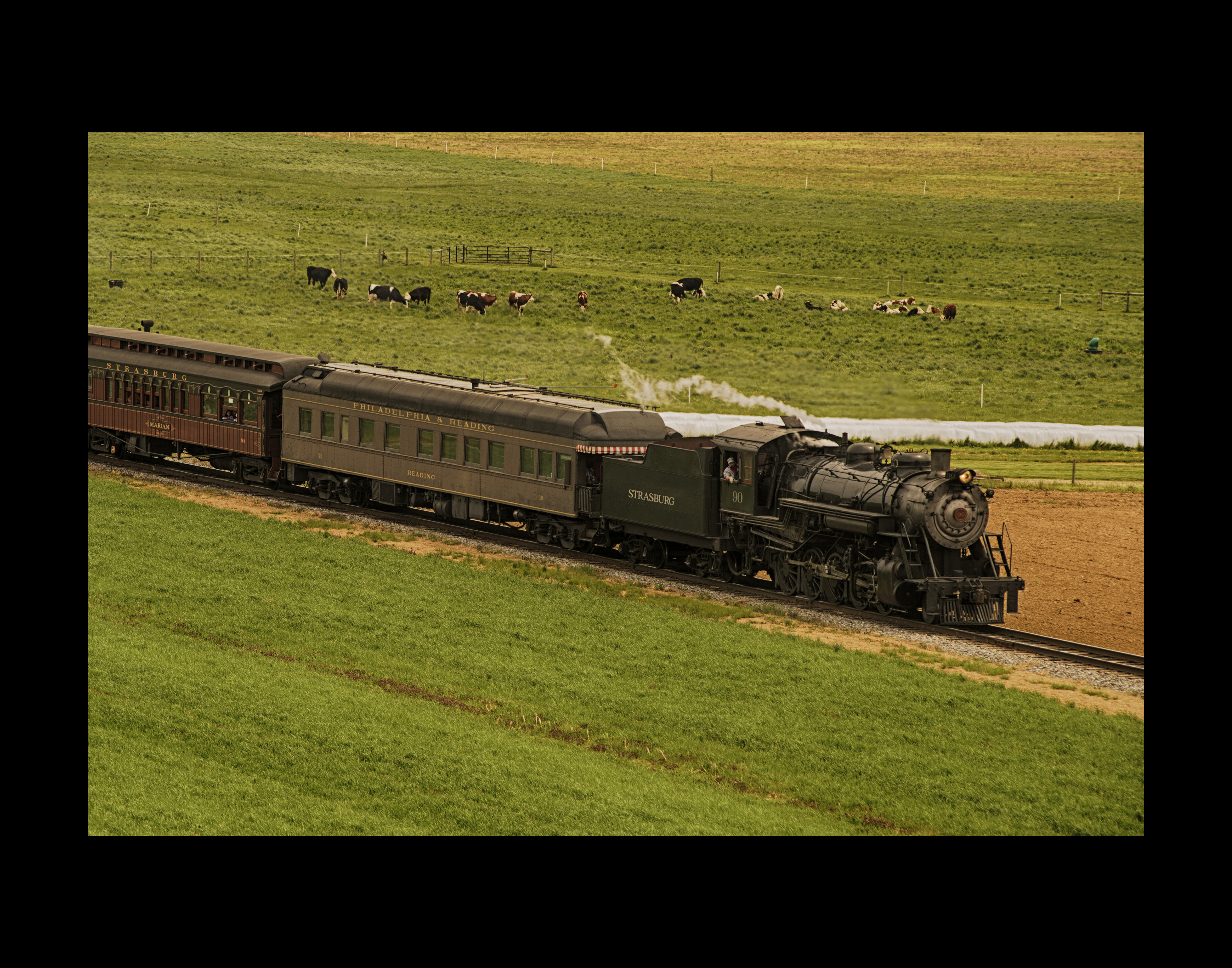 Not just any train, mind you. There is a heritage railroad in South Central Pennsylvania, deep in the heart of Lancaster County, that is home to the Strasburg Rail Road, one of the few remaining operational steam locomotive excursions out there. The Strasburg Rail Road travels five miles through over a dozen Amish farms and farmlands, all in the comfort of restored passenger cars and a big-ass steam locomotive.