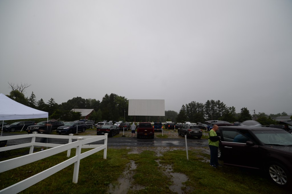 I arrived at the Jericho in plenty of time … but man, there was a lot of rain. The drive-in grounds were a quagmire of muck and mud. But I had to park somewhere.
