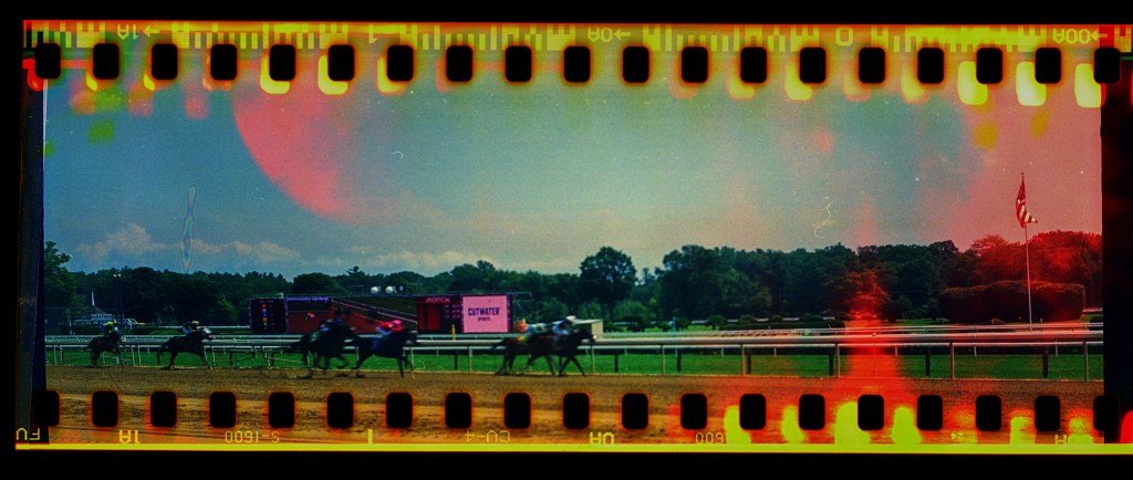 The plan. Saratoga has three tracks – two inner turf tracks, and an outer dirt track. Kodak Red doesn’t have telephoto capabilities, so I’m looking at shooting only the dirt track races. That’s races 1, 4, 6 and 8, according to the racing form.