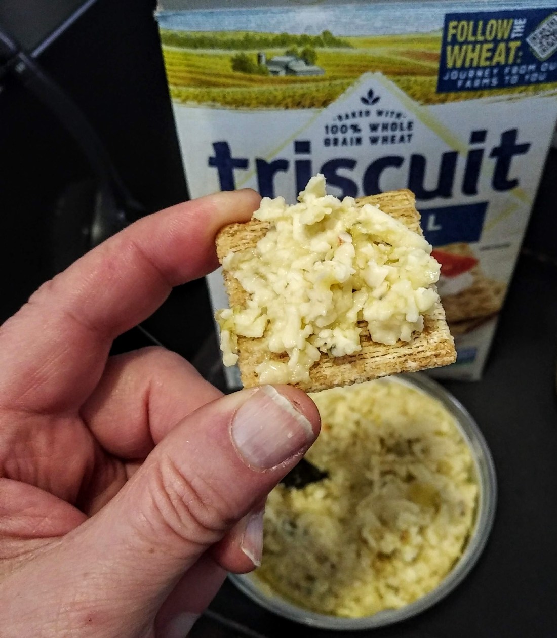 I drove home with the cheese spreads (it was a sale, $5 each ,or 2 for $10) (yeah, you saw what I did there). Tried to dip some potato chips in the spread. No dice. All that did was just give me a bunch of cracked potato chips that got stuck in the spread.