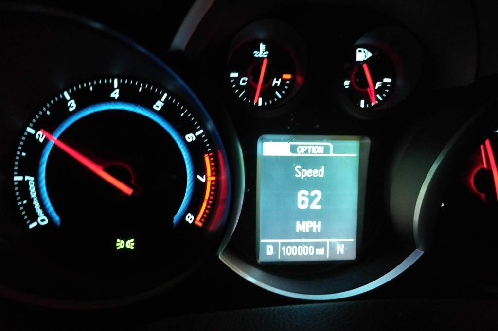 Last Sunday evening, as I was returning from my two-state, two-fair road trip, while driving through a location between Exits 12 and 11, just off the Berkshire Spur where I-90 goes from Columbia County to Albany, the odometer on my 2013 Chevrolet Cruze “Dracourage” hit six figures.