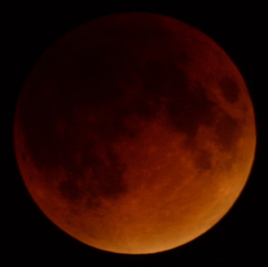 So the main part of the eclipse – where you actually see the earth’s shadow upon the moon – starts at 2:18 a.m., and ends at 5:47 a.m., just before sunrise.
