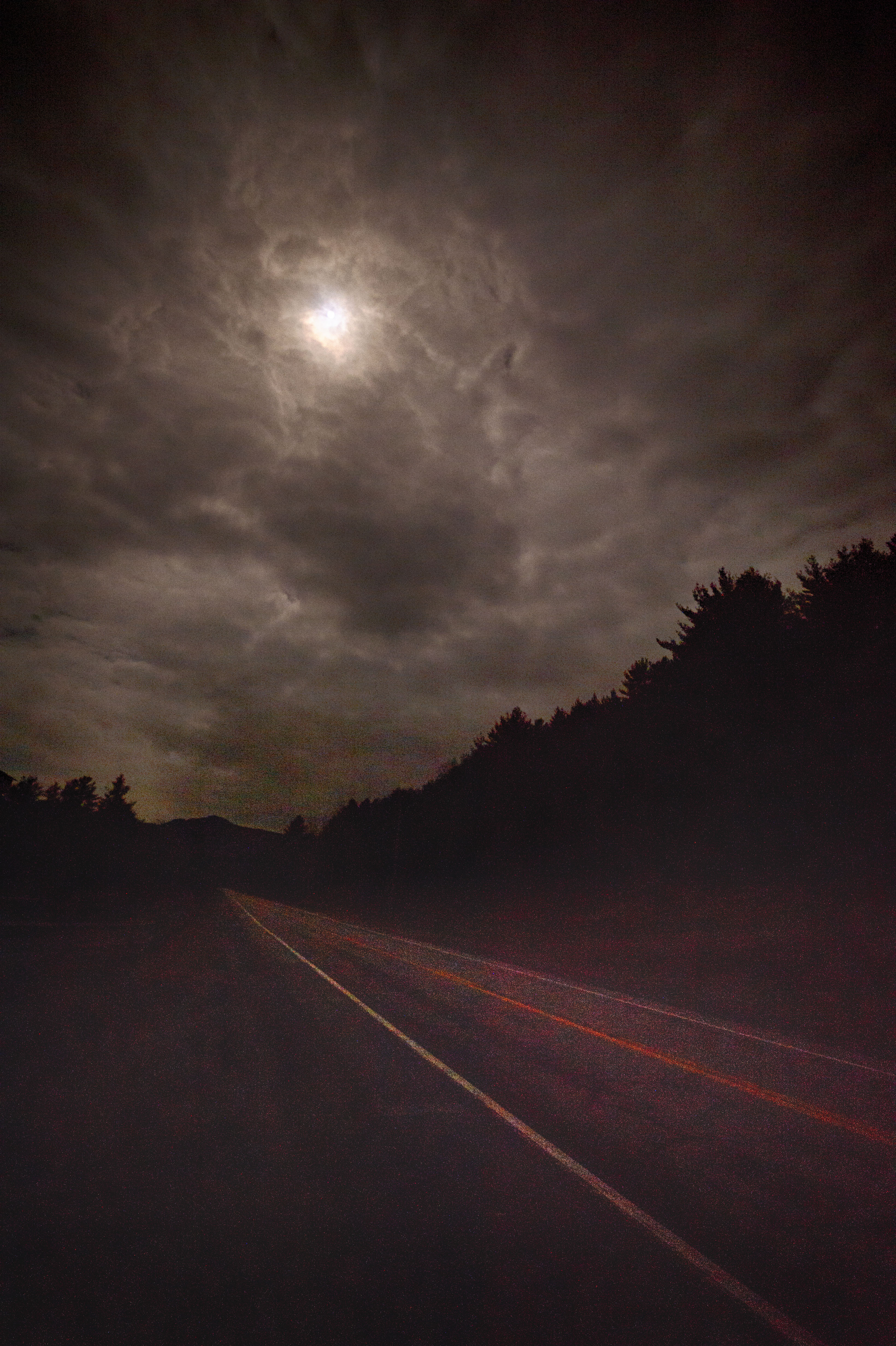 Tripod set up along the side of the road. If all goes well, I should be able to capture the moon and the road at the same time.