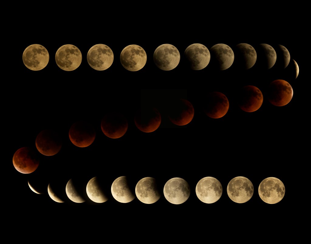 Now comes the procedure. For the next five hours, at 10-minute intervals, take photos. Adjust the camera as necessary – when the eclipse goes toward totality, increase shutter speed. When it hits that blood-red totality, switch to a higher ISO. And do everything in reverse as the moon comes out of the eclipse.
